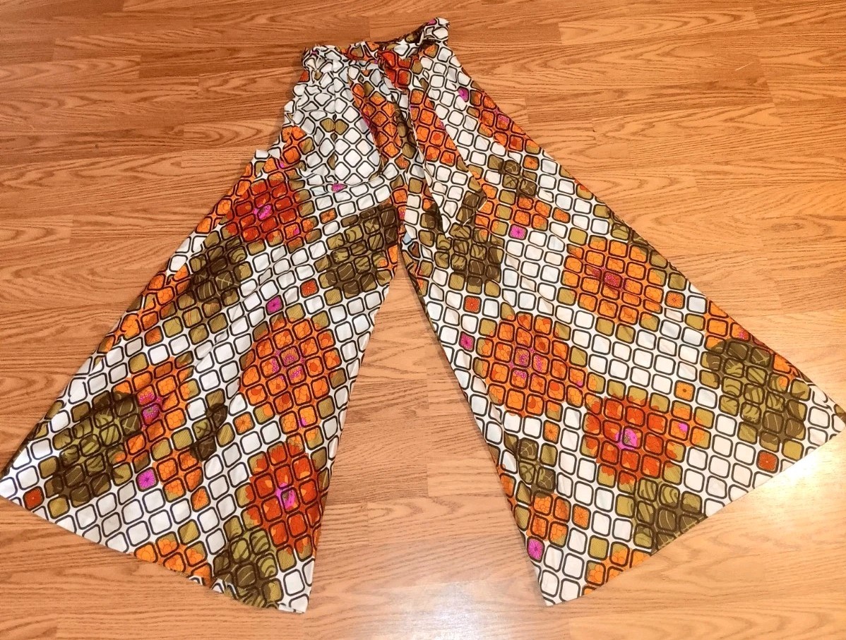 как выглядит Vintage Alex Colman 70s Palazzo Pants Fall Floral Boho Wide Leg Trousers 26" фото