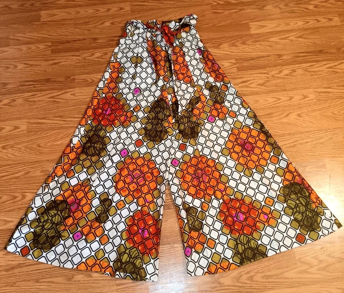 Vintage Alex Colman 70s Palazzo Pants Fall Floral Boho Wide Leg Trousers 26