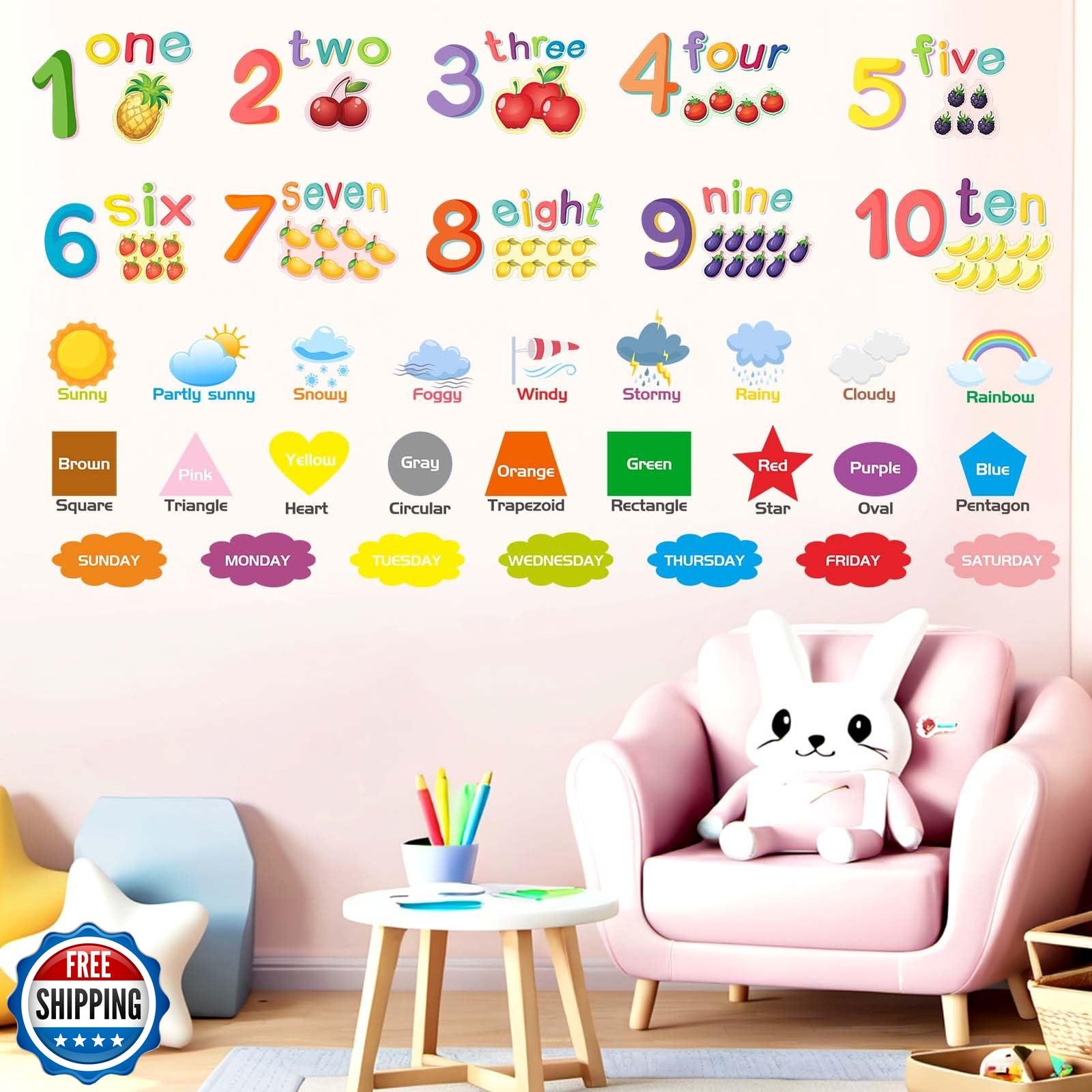 Alphabet Numbers Wall Stickers for Classroom: Kids Baby Girls Boys Nursery Pl