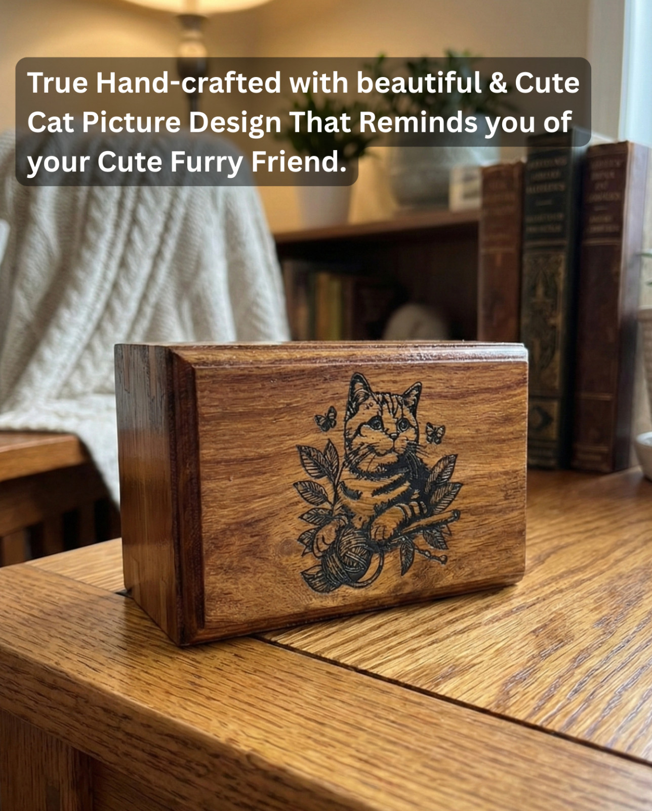 • Wooden Urn Beautiful Cat Design-Pet Urns for Cat Ashes-Decorative Wooden