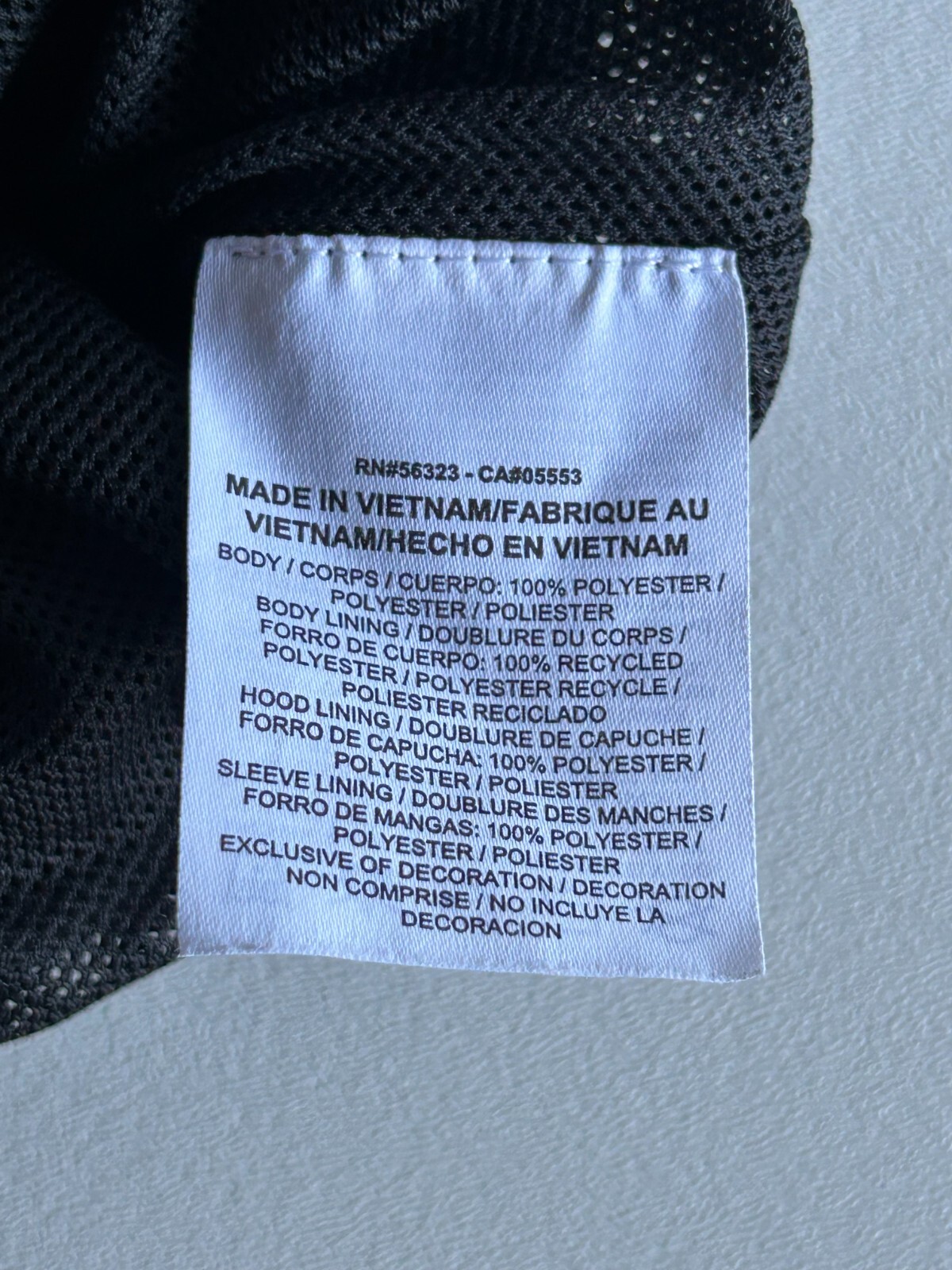 Outer Shell Material: 100% Polyester