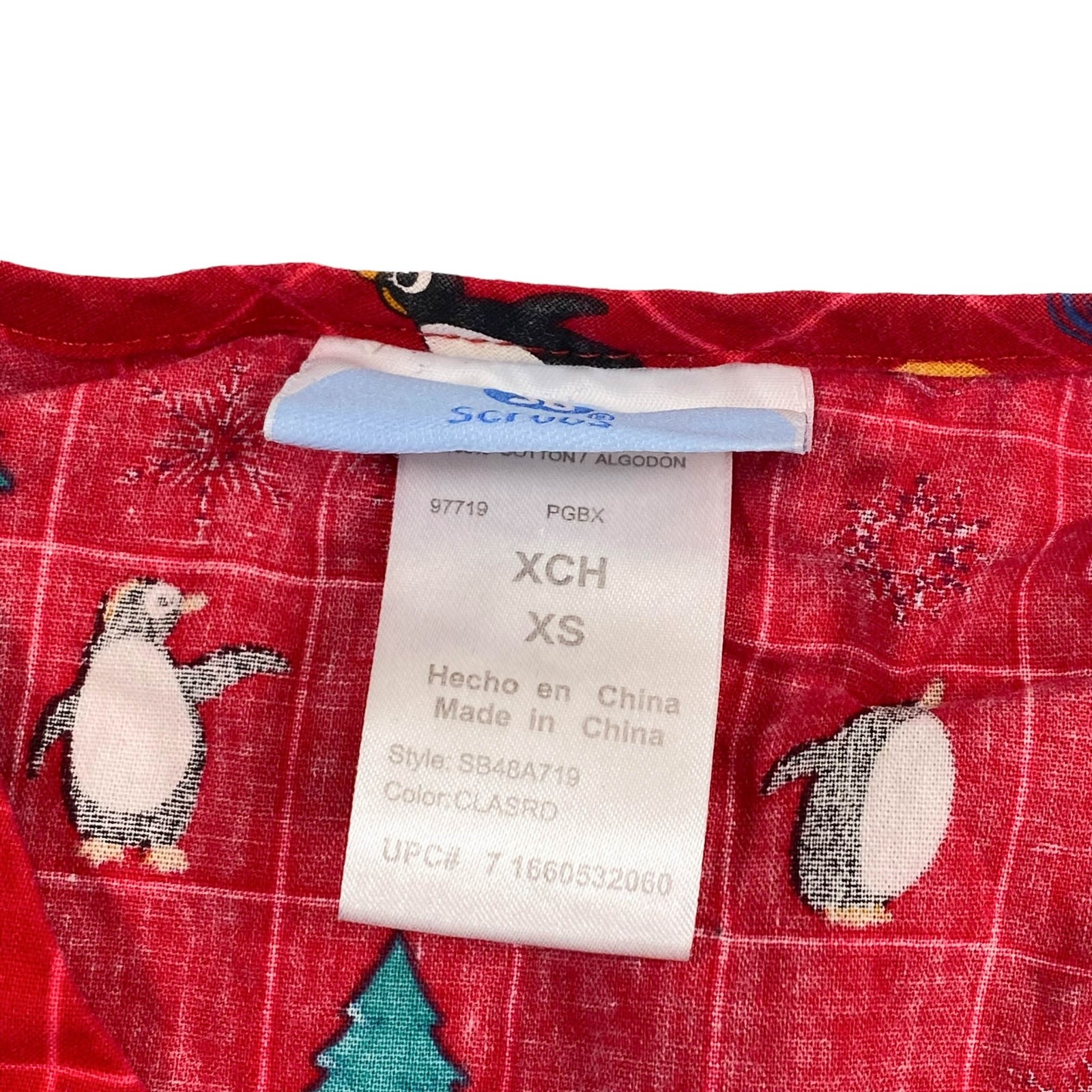 SB Scrubs Scrub Top XS Penguins Winter Scenes Trees Snowflakes Collage Red