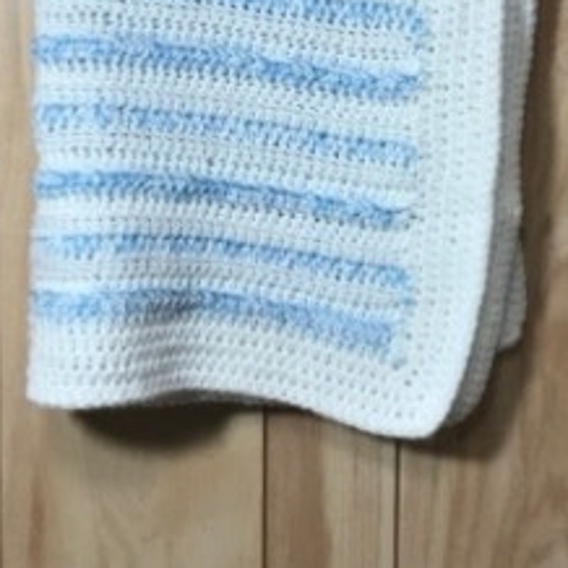 NWT Blue White Striped Handmade Crocheted Baby Blanket by Dawny