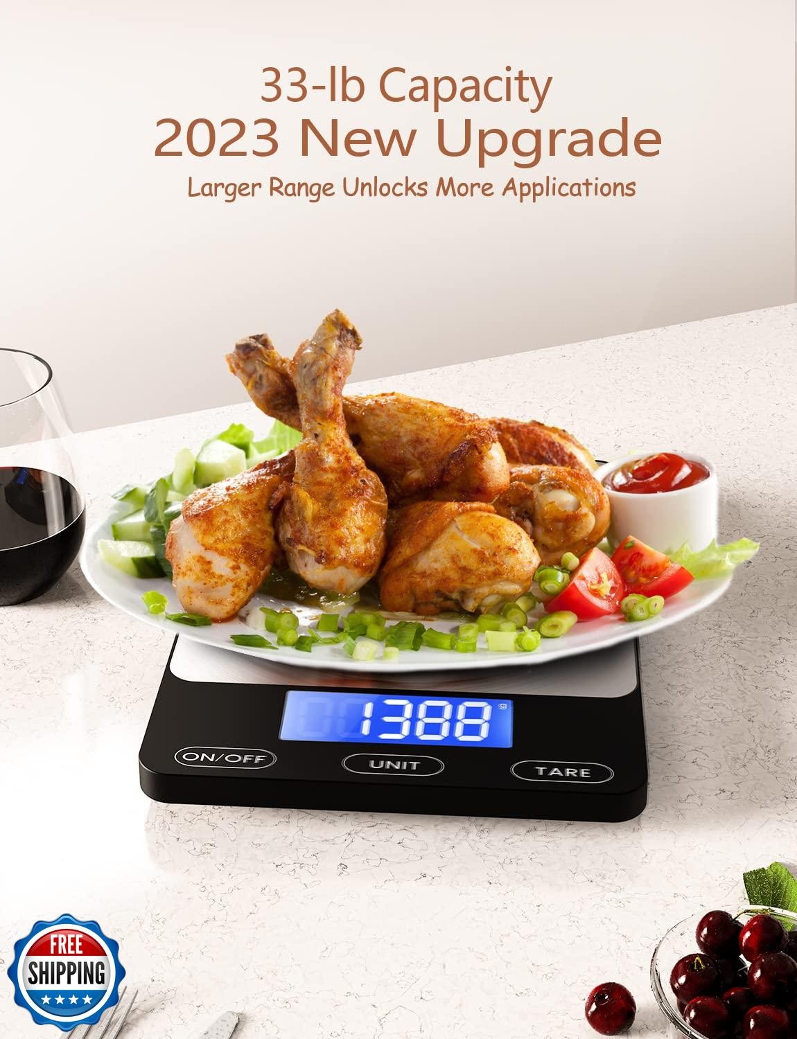 Food Scale -33lb Digital Kitchen Scale for Food Ounces Grams Rechargeable 304