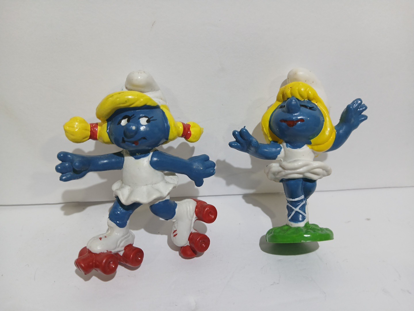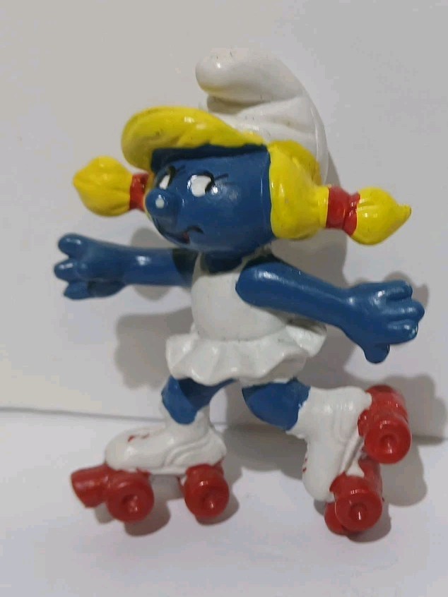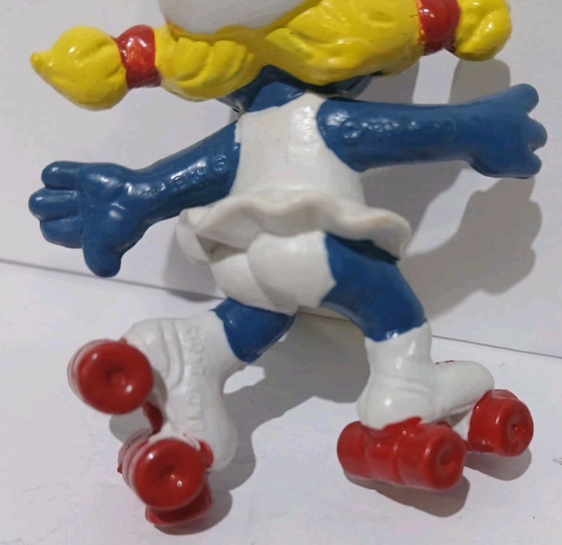 • 2 1980 ROLLER SKATE SMURFETTE Smurfs Figure PVC Peyo Schleich Hong Kong Vintage