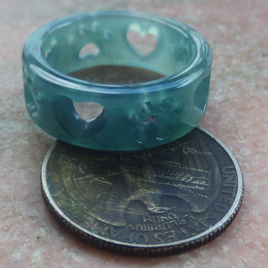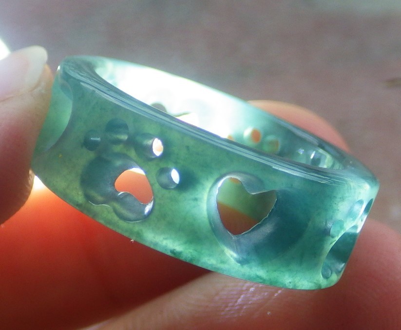 как выглядит Video Certified Green A Jadeite Jade Heart Round Circle Ring NO. 9 419123 фото