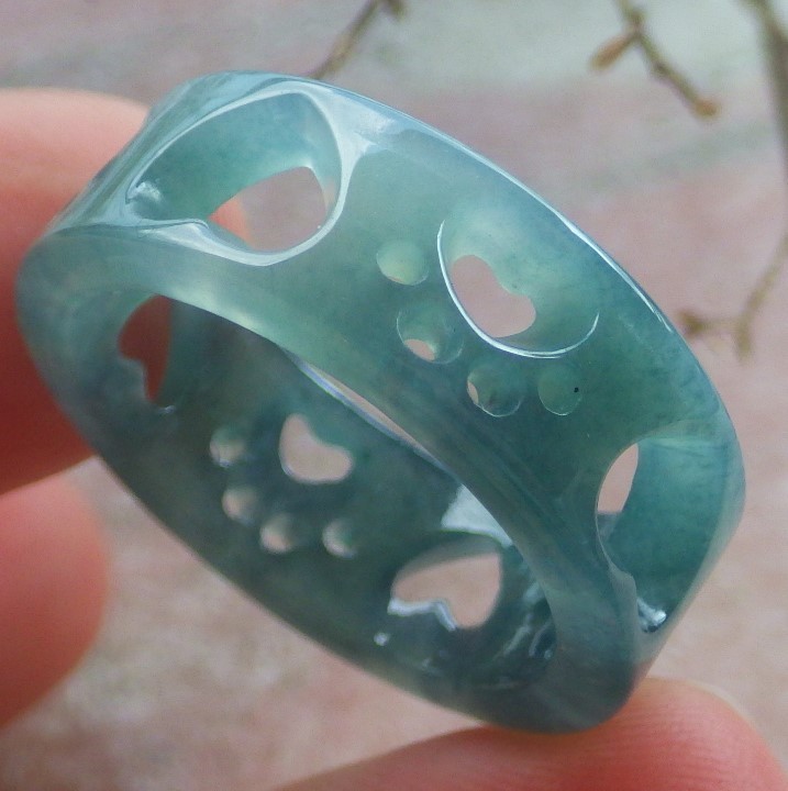 Video Certified Green A Jadeite Jade Heart Round Circle Ring NO. 9 419123