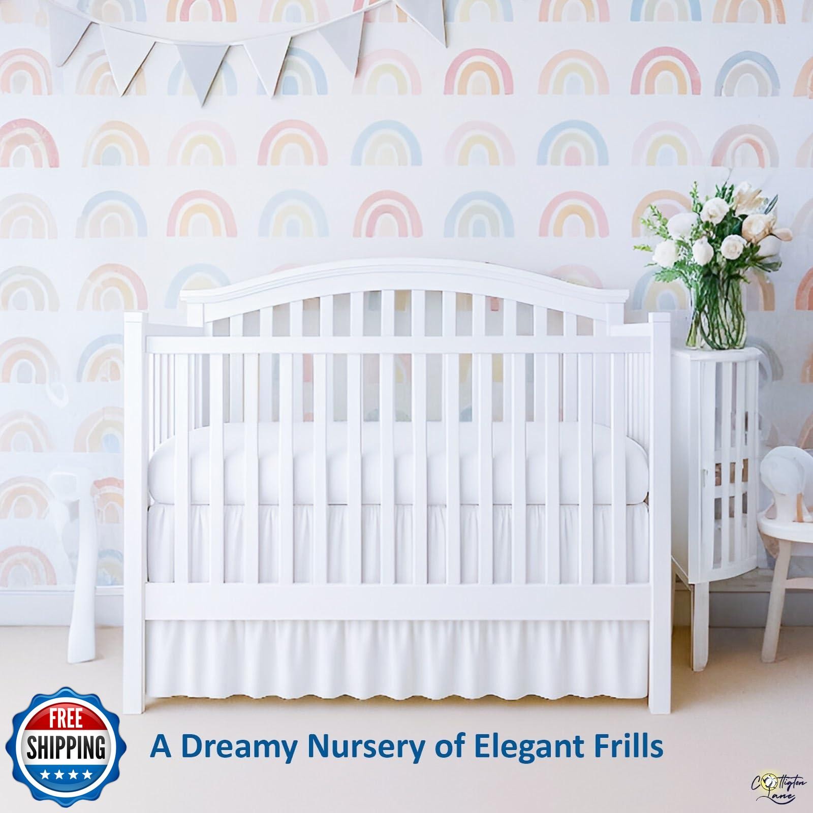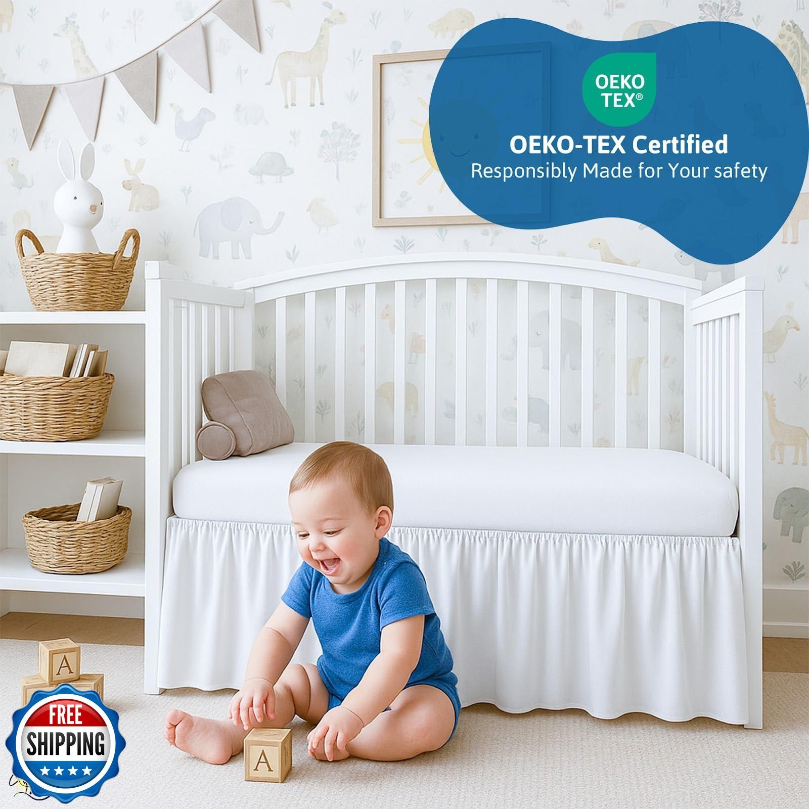 Cottington Lane White Infrant Crib Bed Skirt Dust Ruffle with Split Corner, 1