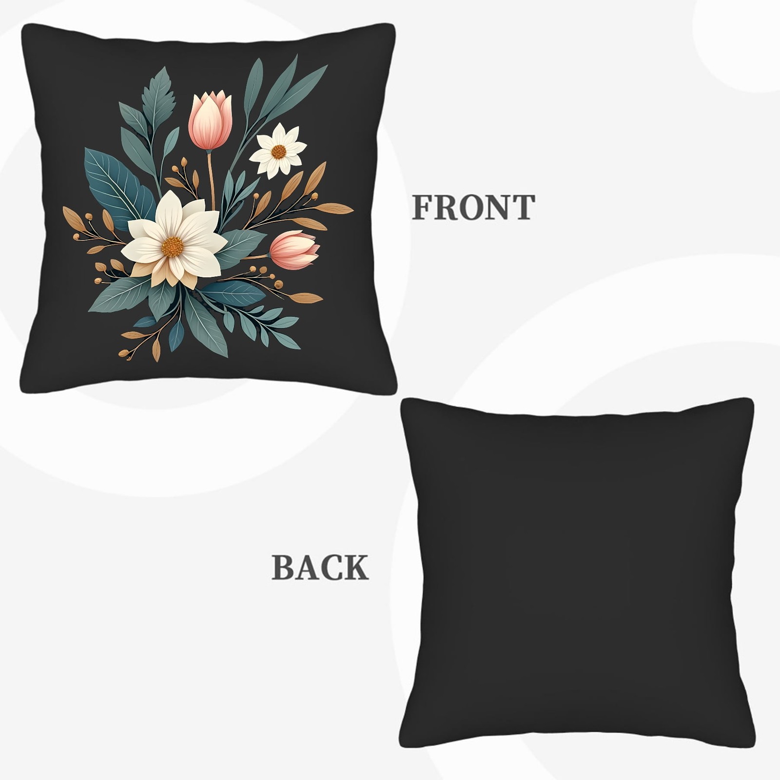 Elegant Floral Throw Pillow Covers 18x18in Set of 2 - Decorative Cushion Cases
