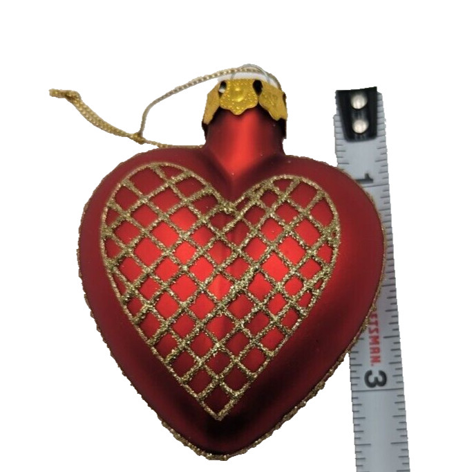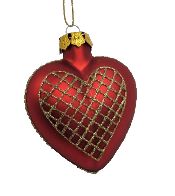 Red Heart Shaped Ornament with Gold Glitter Net Design