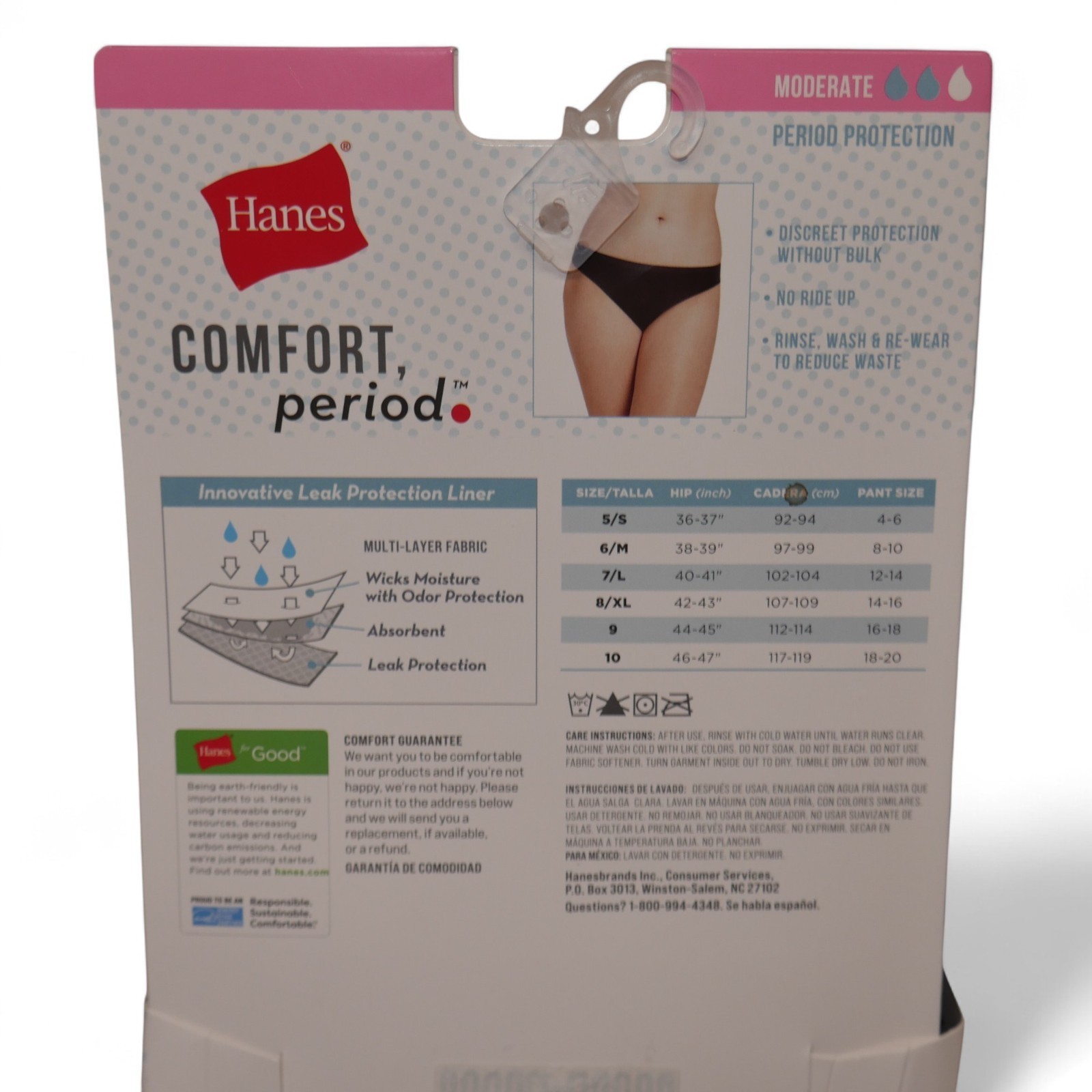 Hanes Comfort Period Light Discreet Leak Protection Bikini Underwear Size 8 NEW