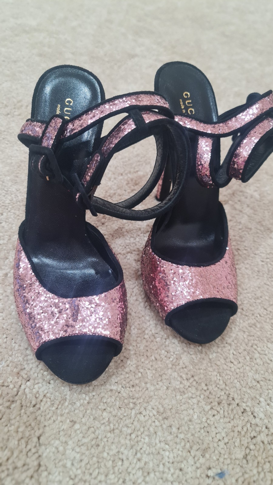 как выглядит Authentic Gucci Melodie Pink Glitter Sandals Sz 37 New фото