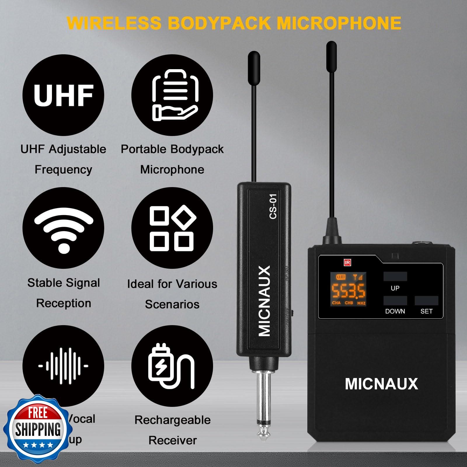 MICNAUX Wireless Lapel Microphone System with Headset and Lavalier Mics, UHF