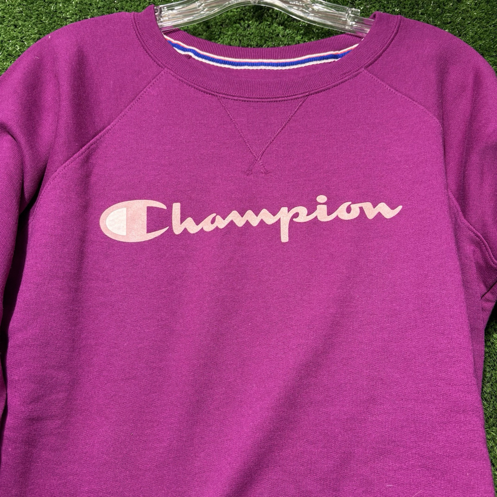 NWT Champion Purple Spellout Pullover Crewneck Sweatshirt Women s Small