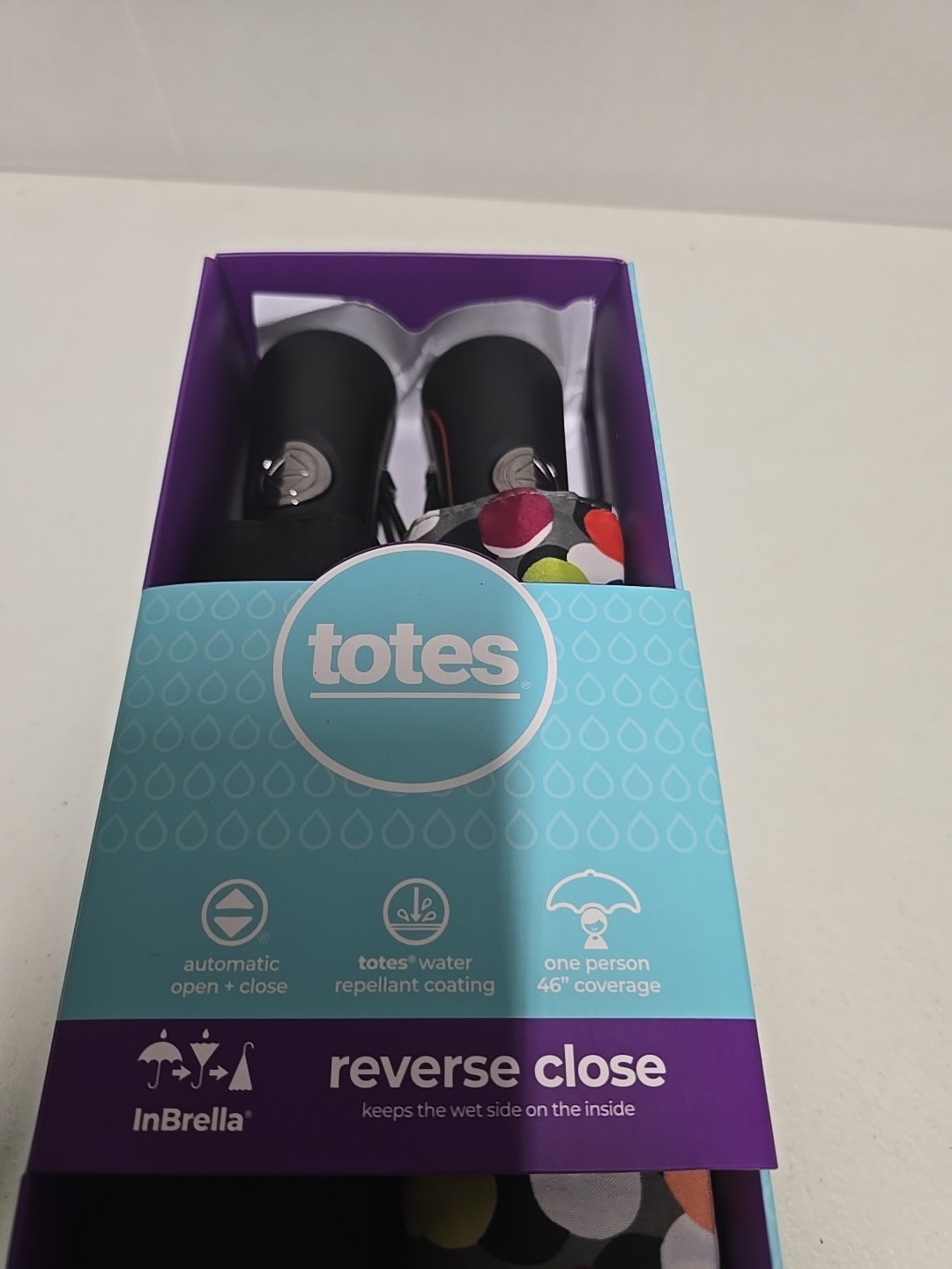 Totes Recycled Automatic Compact InBrella, 2-pack Reverse Close Umbrella new