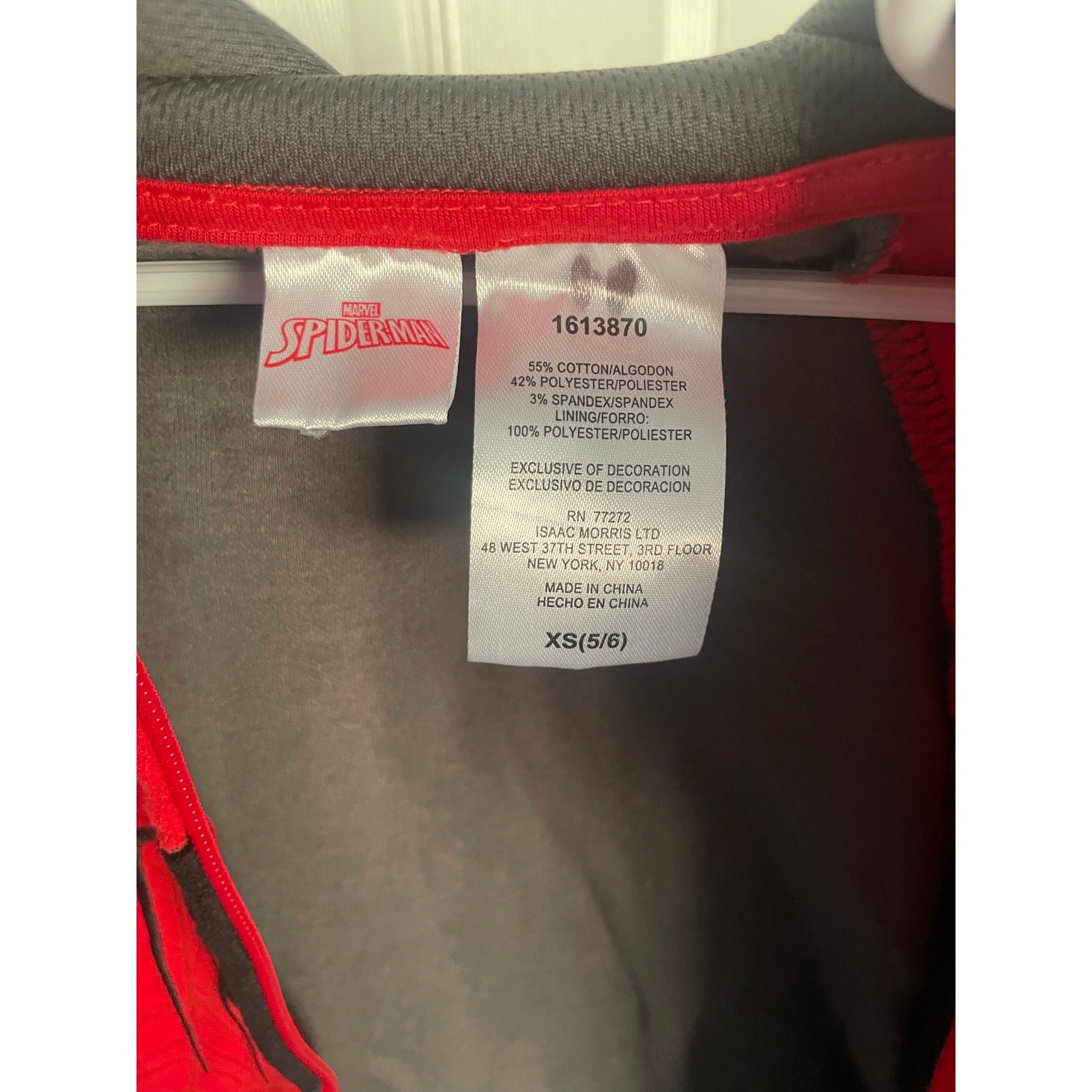 Marvel Spider Man Boys Zip Up Hooded Sweatshirt Hoodie Jacket Size XS 5/6