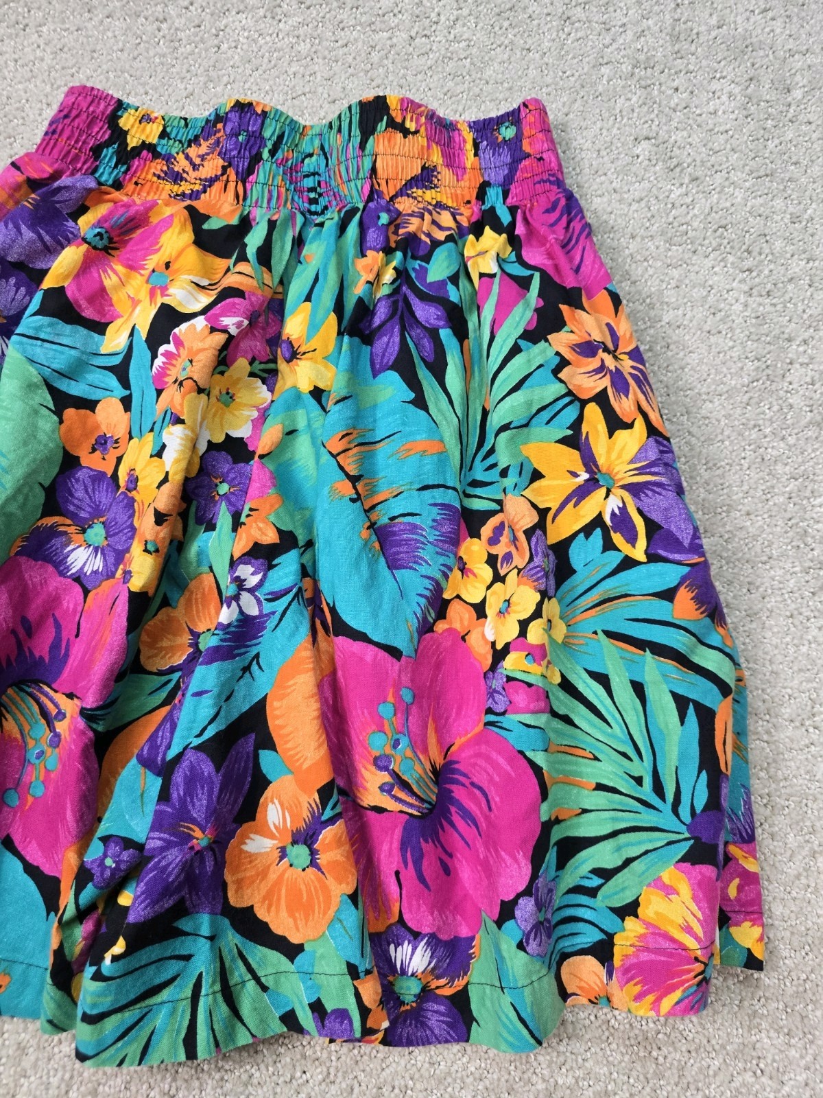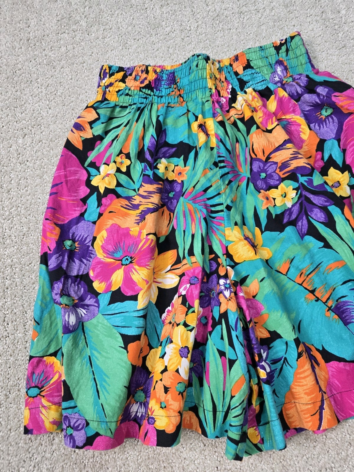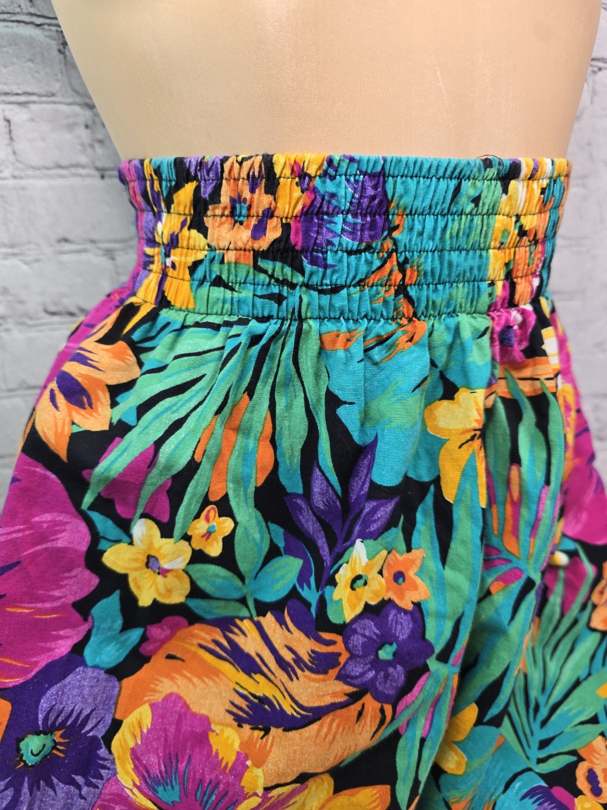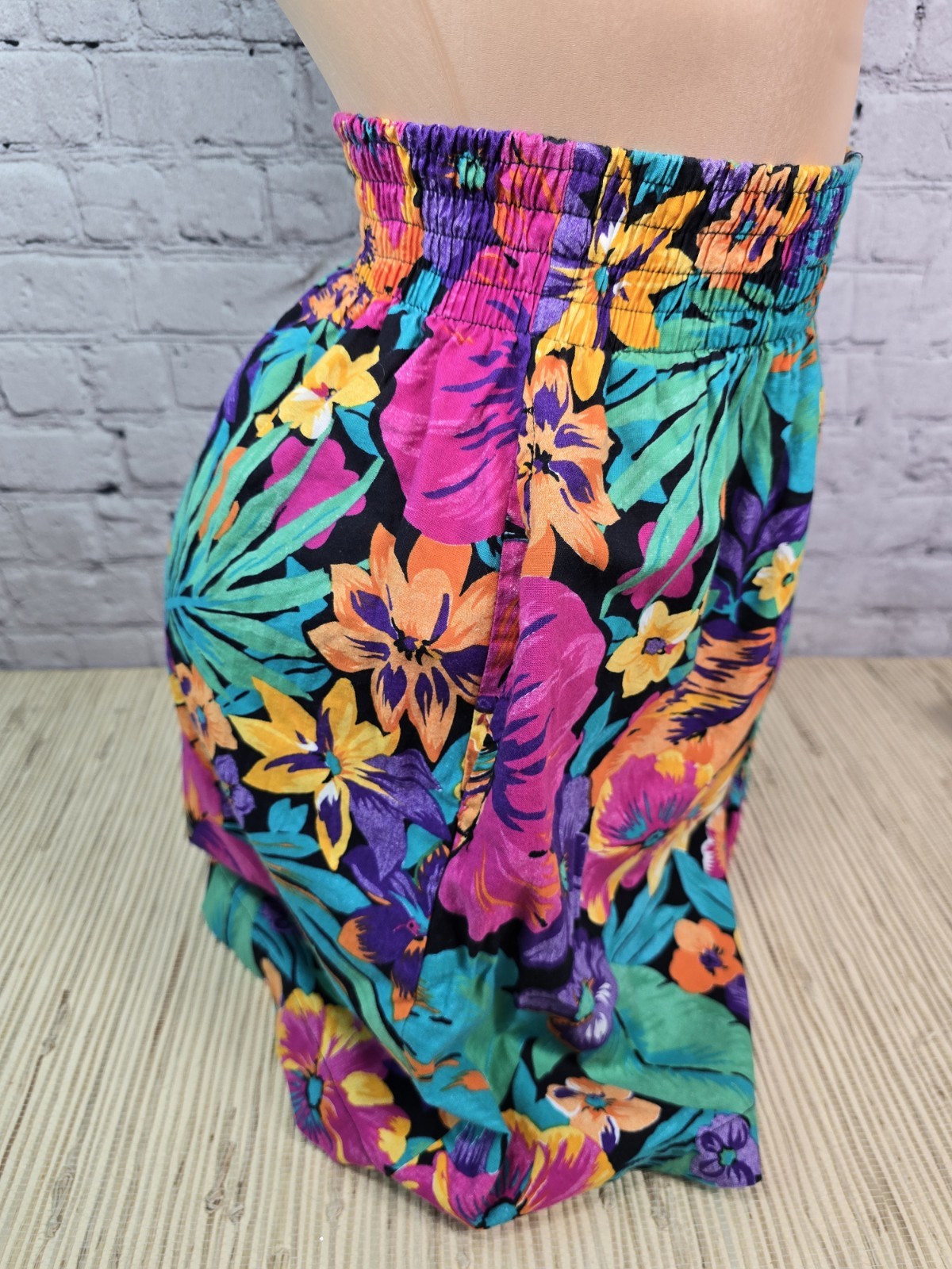 Vintage 80s Medium M Sostanza Multicolor Shorts Stretch Elastic Floral USA Beach