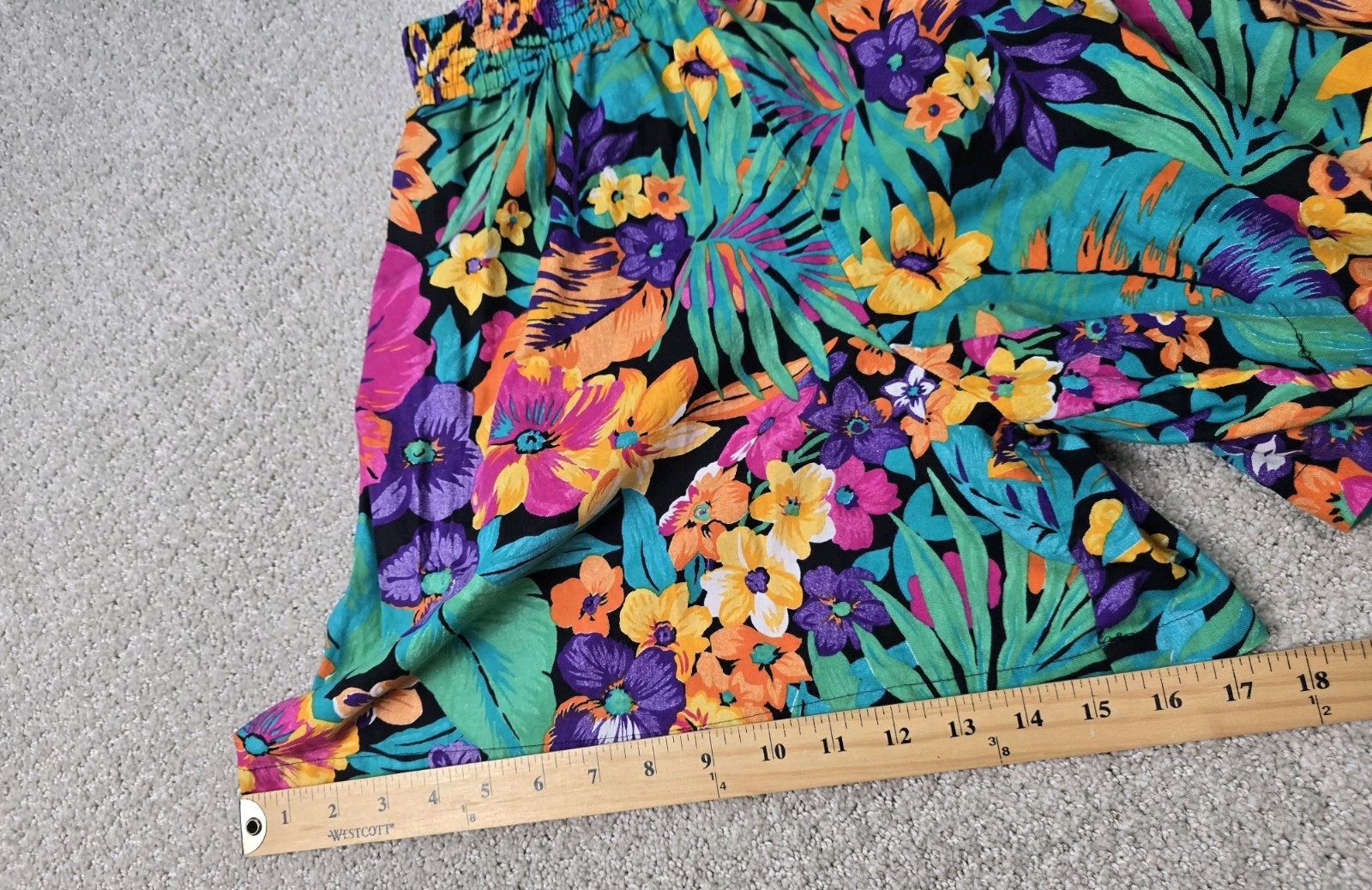 как выглядит Vintage 80s Medium M Sostanza Multicolor Shorts Stretch Elastic Floral USA Beach фото