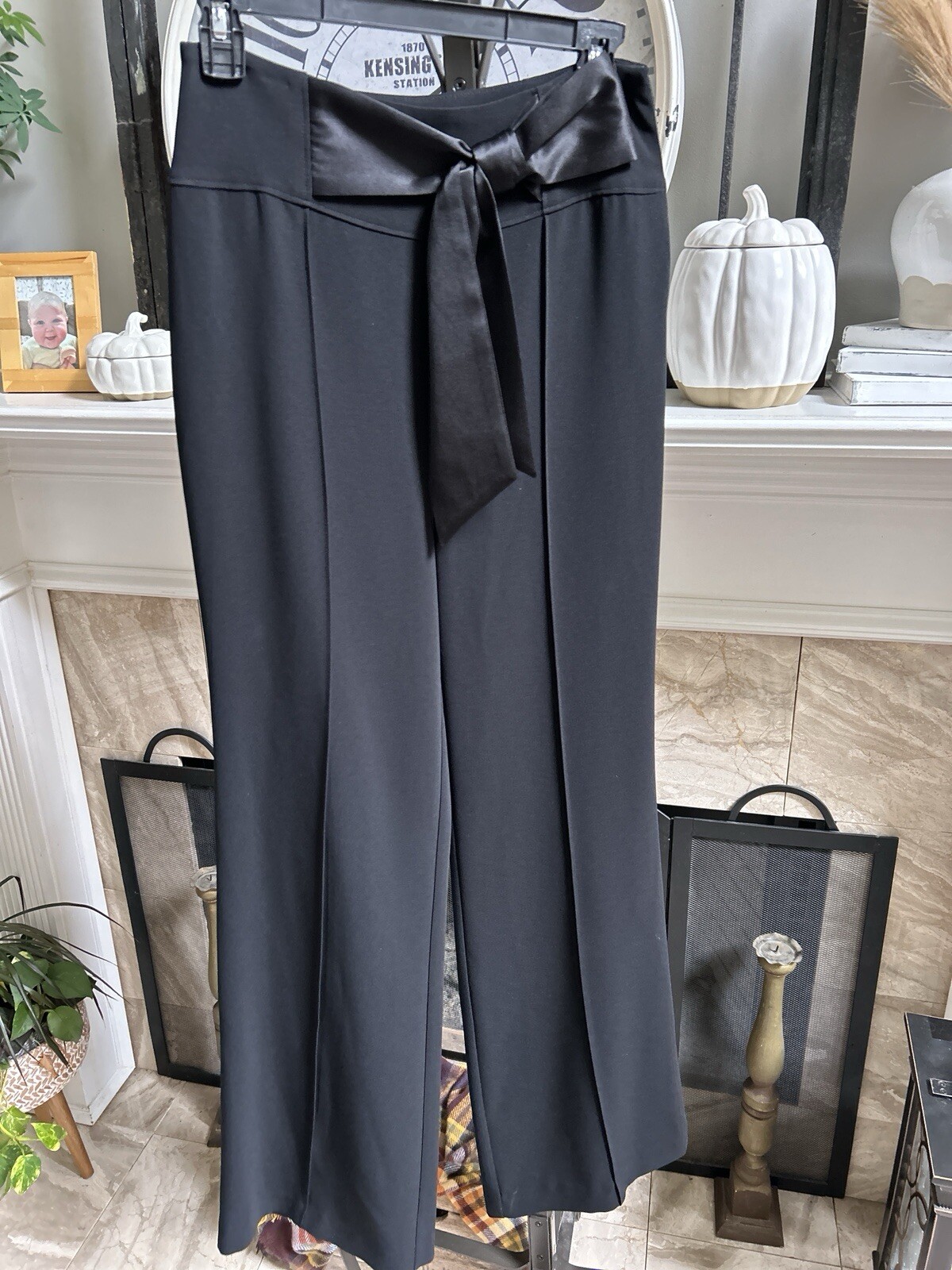 как выглядит 395 CINQ A SEPT "Isabel" black wide leg pants with satin tie front sz 2 фото