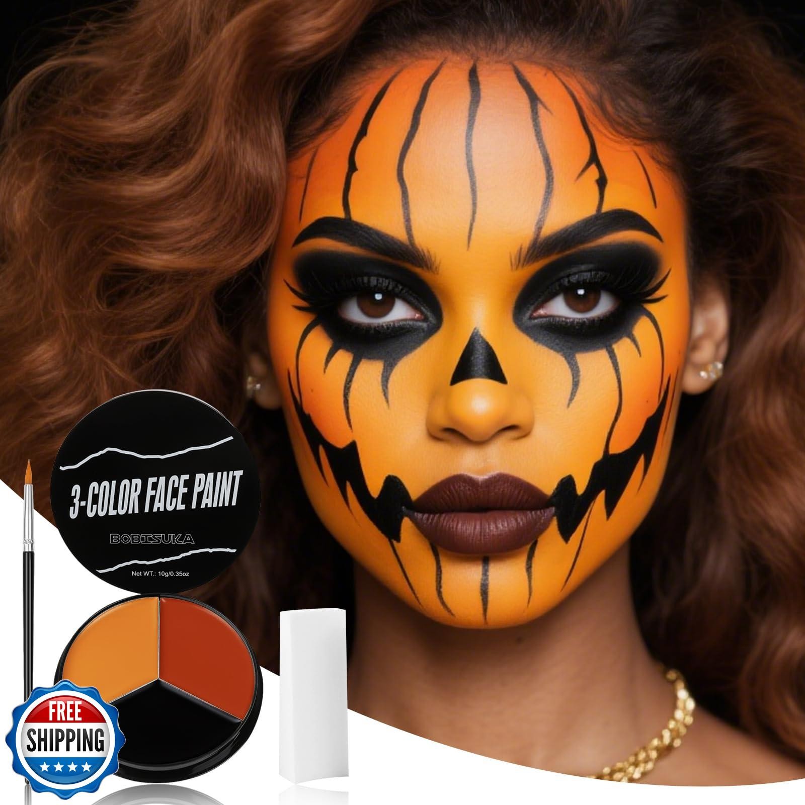 Black Red Orange Face Body Paint 3PC Sponge Brush, Colored Eye Black for