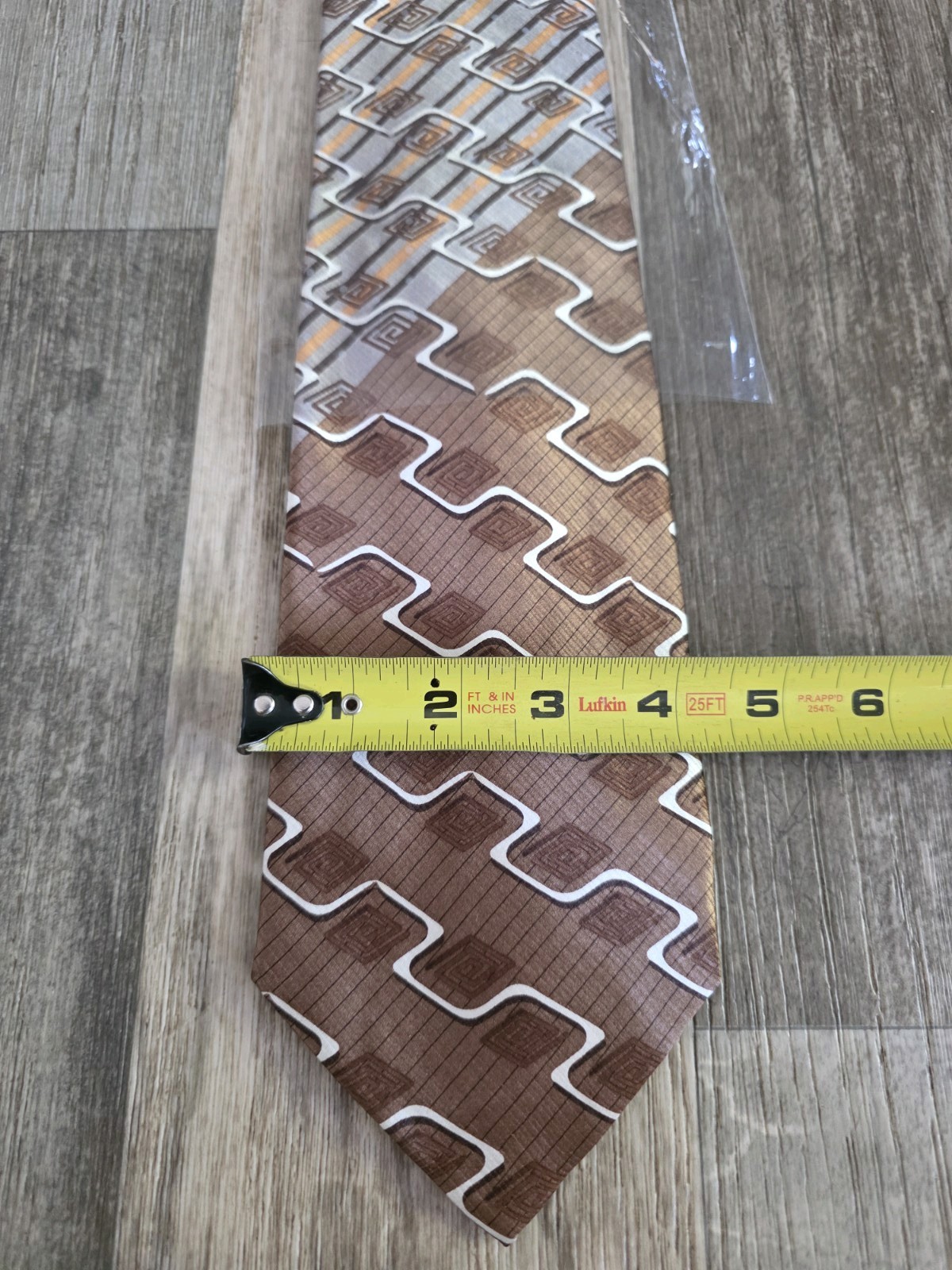 Steven Land Designer Silk Necktie with Pocket Square. Browns. Vintage Tie