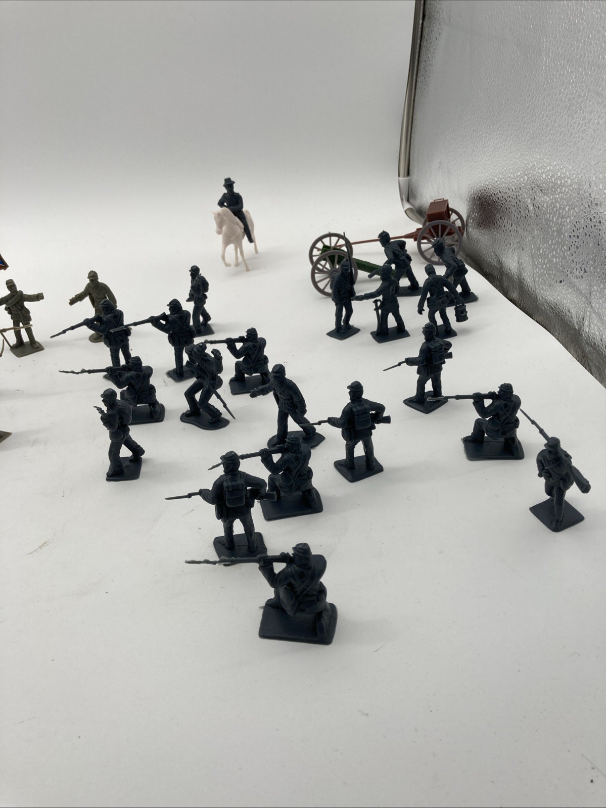 Huge Lot Vintage Civil War Soldiers Plastic Play Set Figures Blue Gray