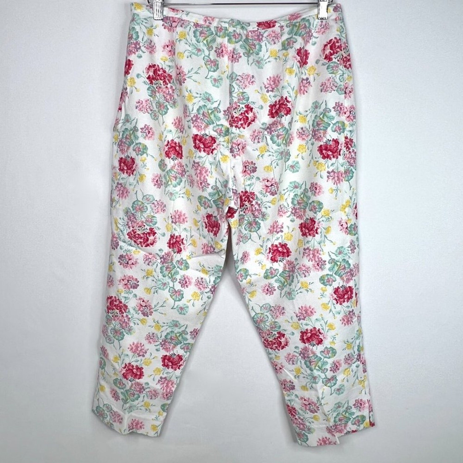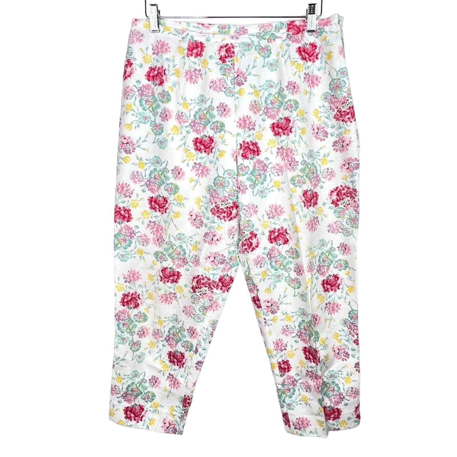 Vintage 90s Laura Ashley White Floral Print Capri Pants 12