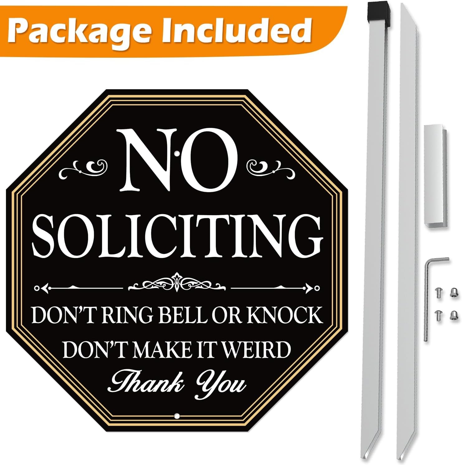 как выглядит No Soliciting Sign For House, 11" x 27" 11 x 27, Gold xFF08;DON apos;T RING фото