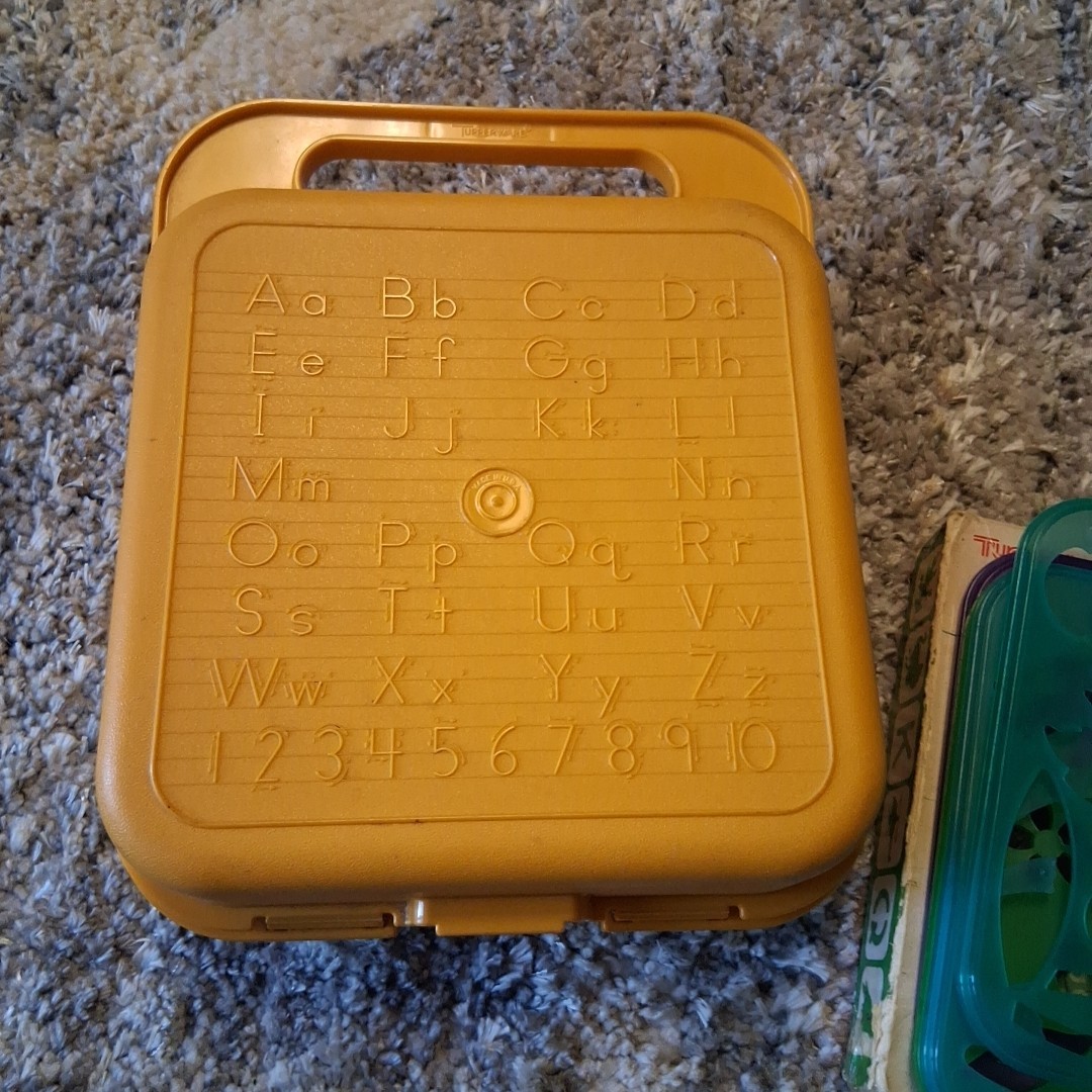 как выглядит Vtg Tupperware Tuppertoys 35 Stencil Trace Art -Alphabet,Animal, Holiday Case фото