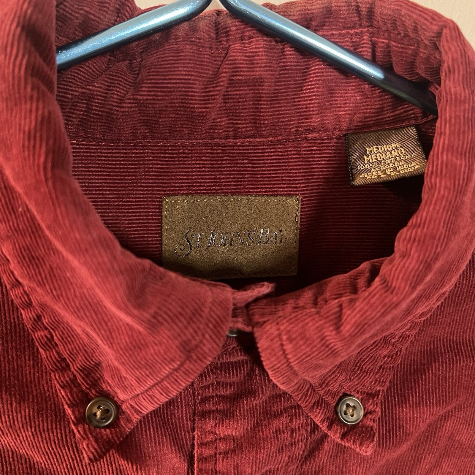 VTG St. John s Bay Corduroy Red Men s M Long Sleeve Button Up Shirt Preppy EUC