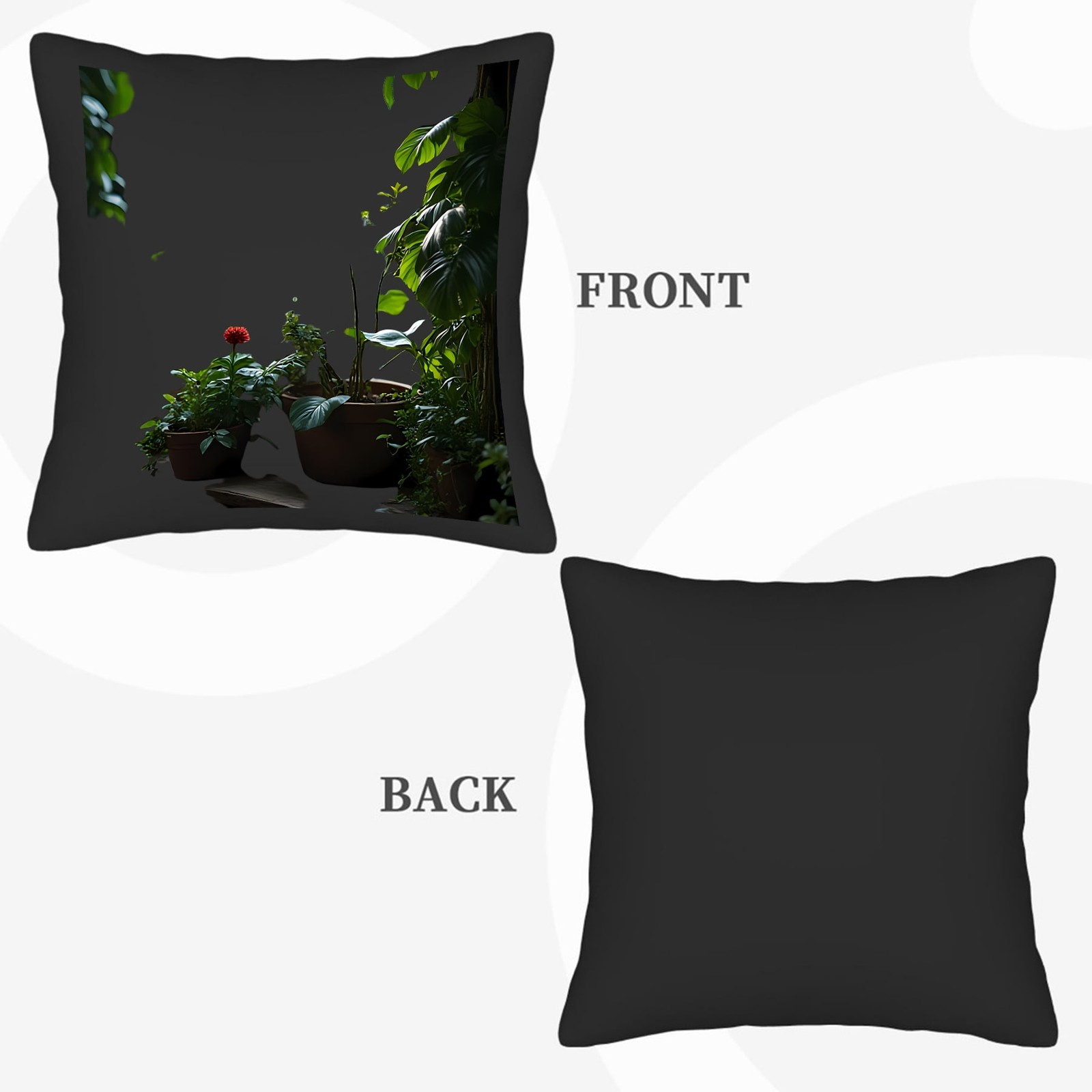 Set of 2 Decorative Throw Pillow Covers 18x18in-Vibrant Green Plants Red Flower