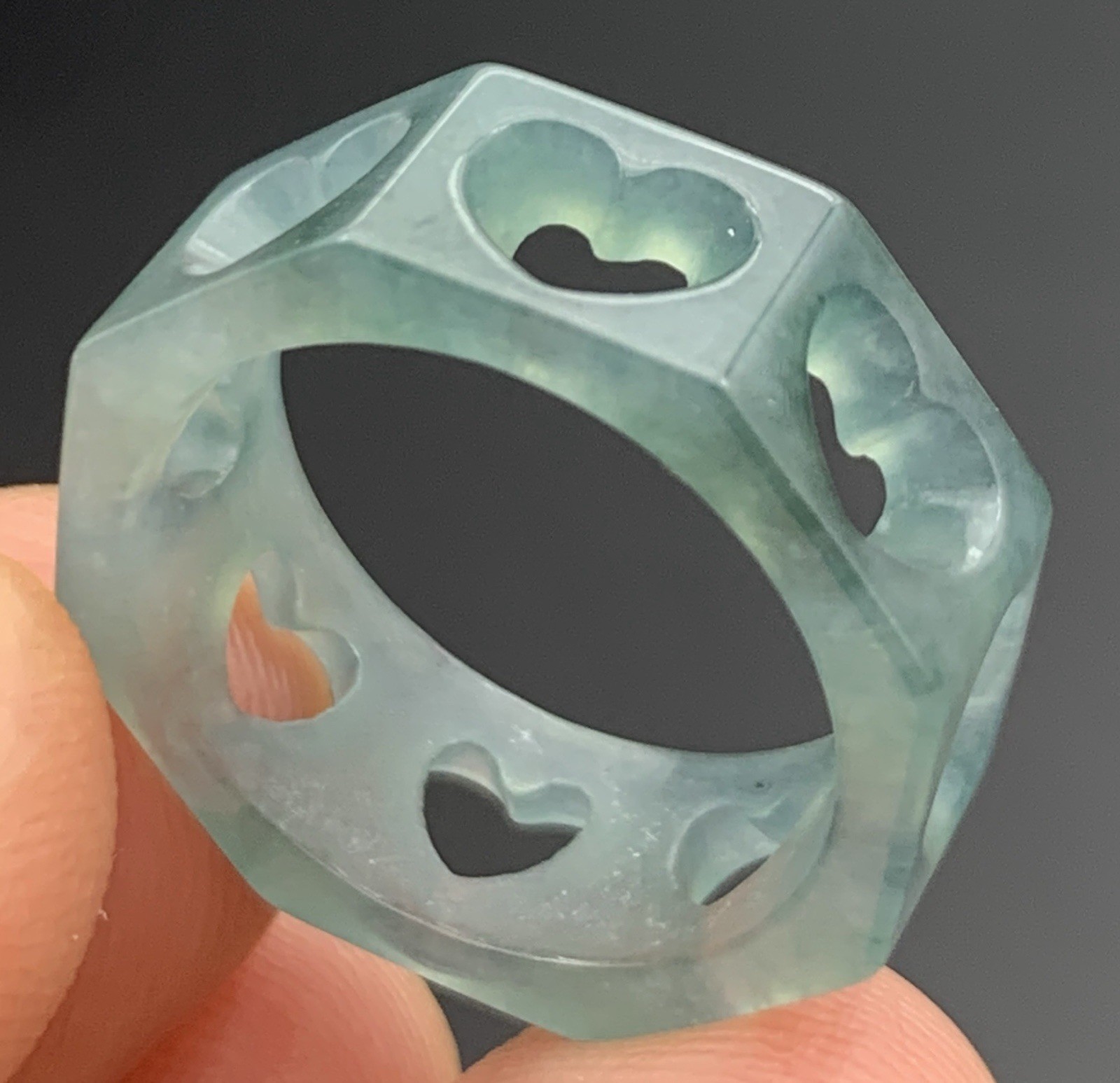 как выглядит Video Certified Natural A Jadeite Jade Heart Round Circle Ring NO. 5.25 419916 фото