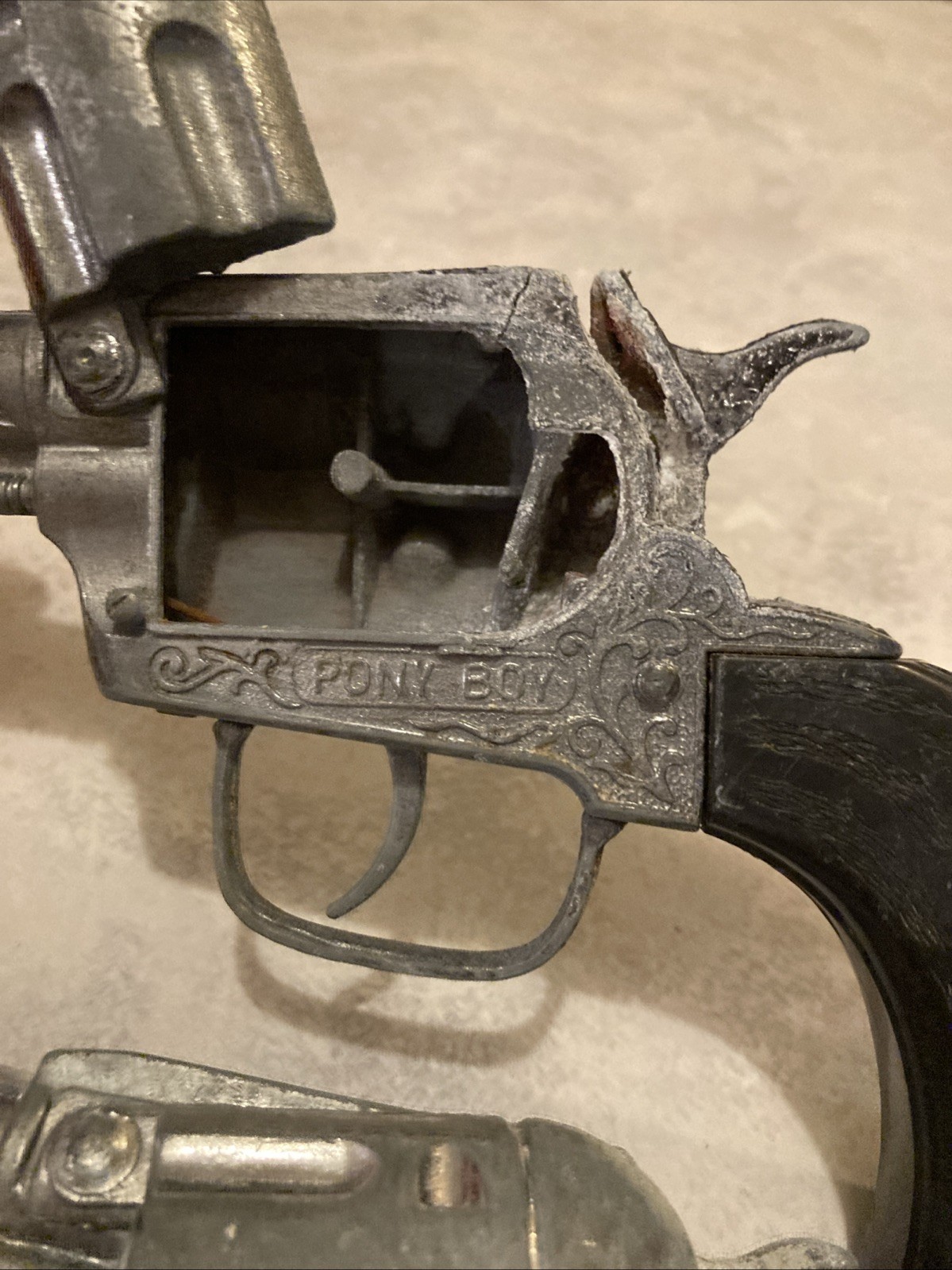 Vintage Pony Boy Cap Guns Two Guns Rough Shape Orange Safety Tabs On Guns