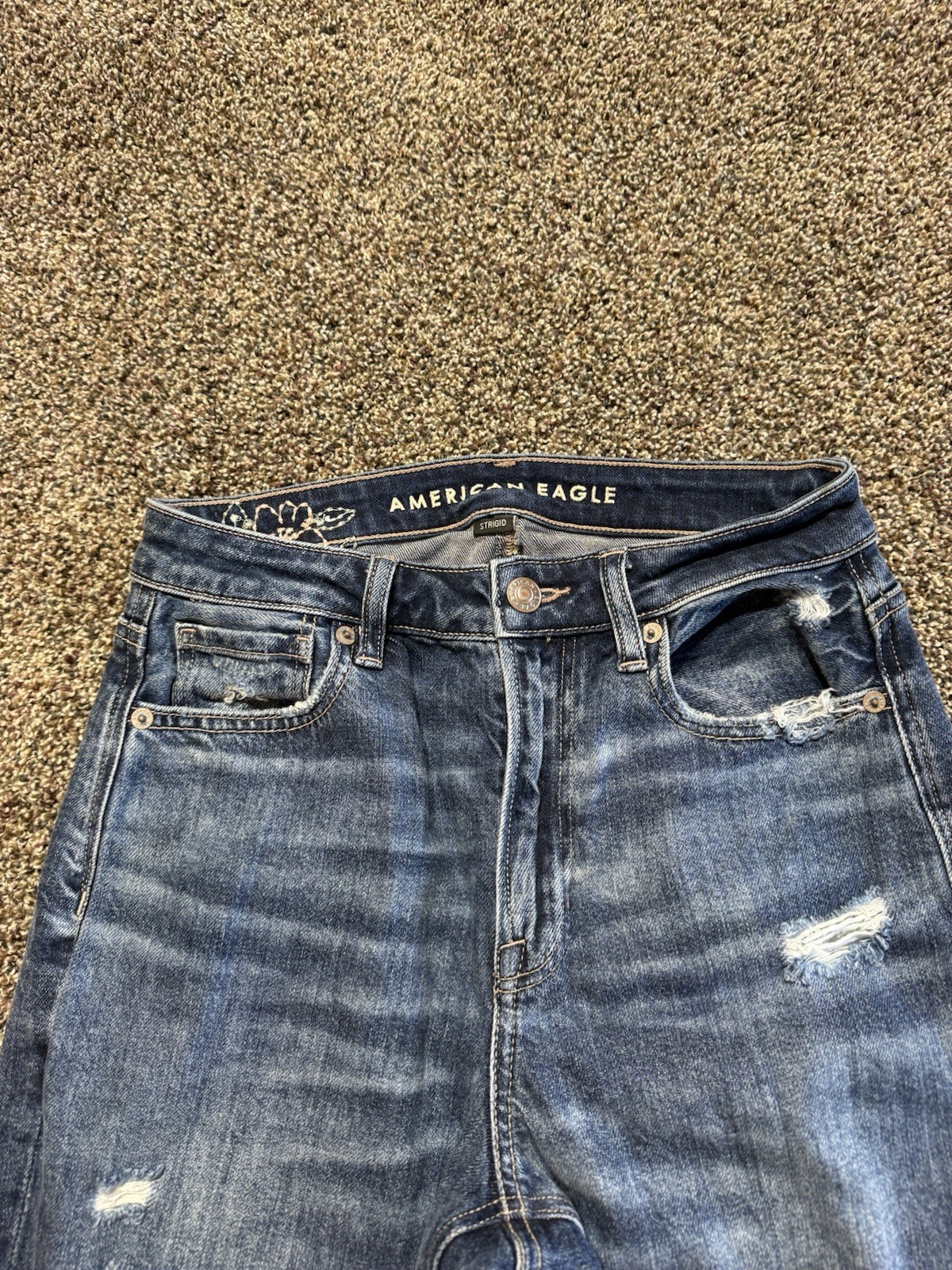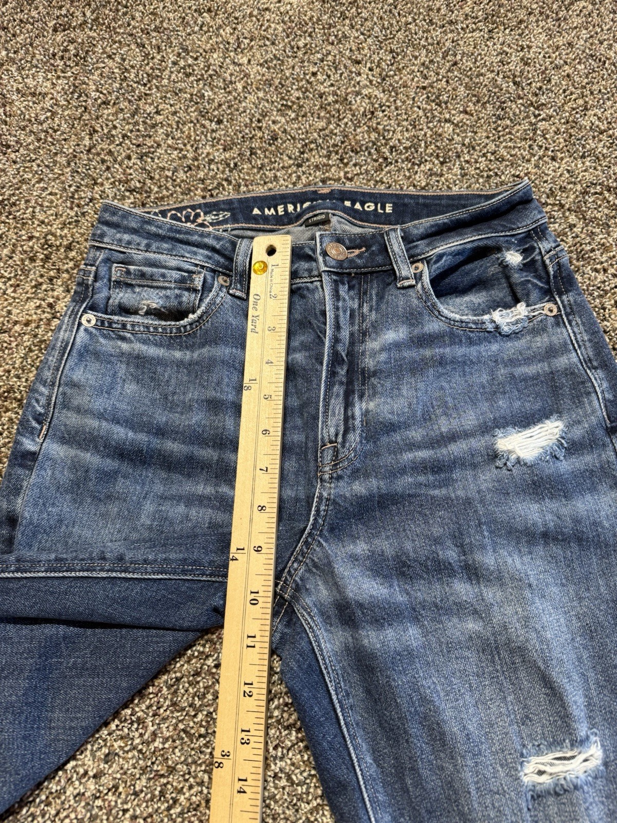 как выглядит American Eagle Womens Jeans Size 2 TALL X LONG Blue Denim Mom Distressed фото