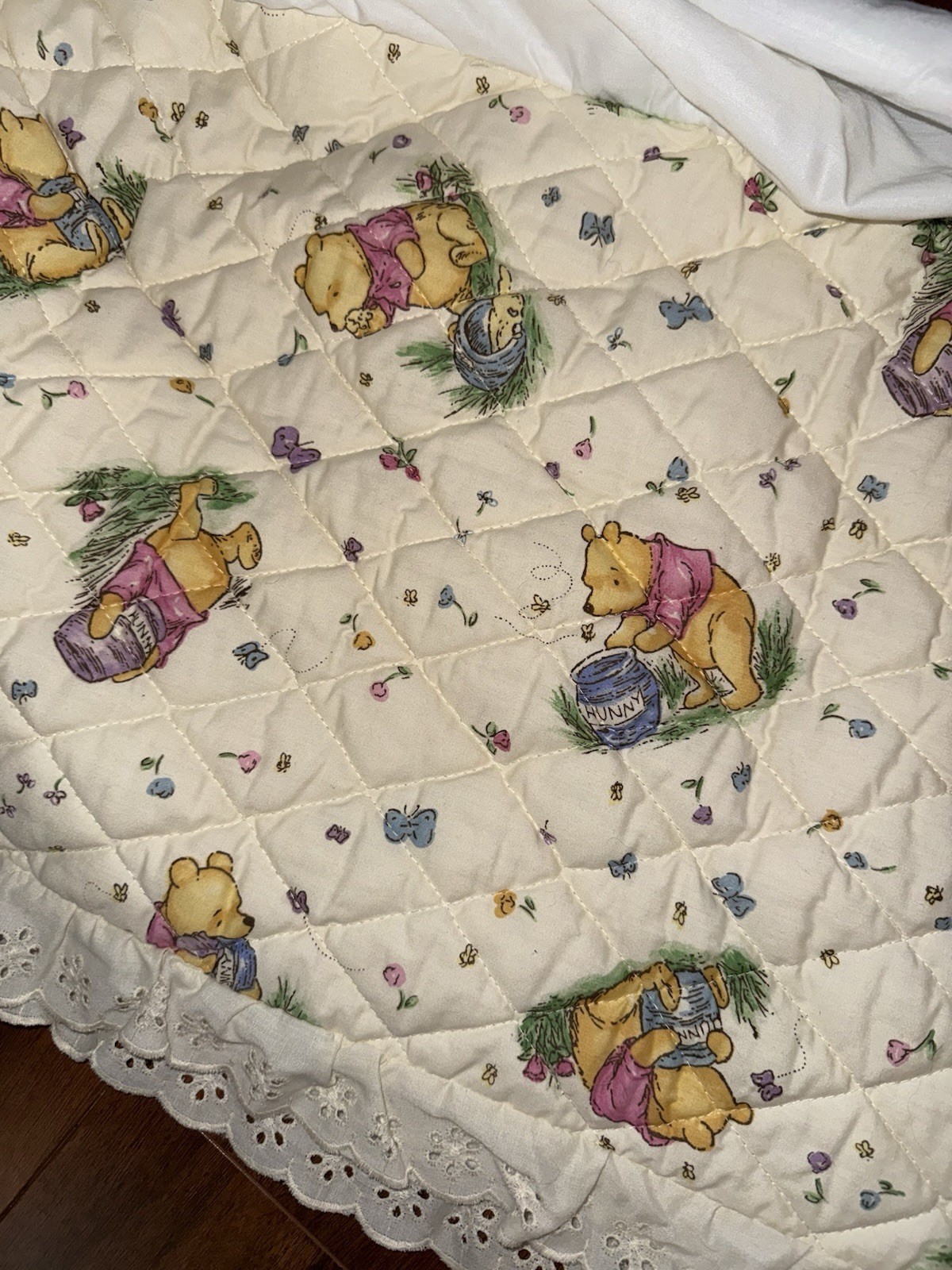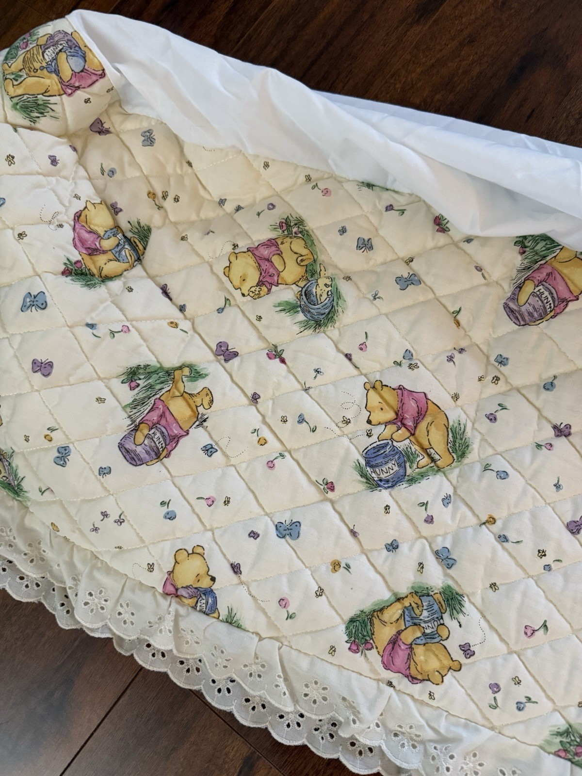 Vintage Classic Pooh Baby Bassinet Bedding Set Winnie the Pooh Nursery Lace Trim