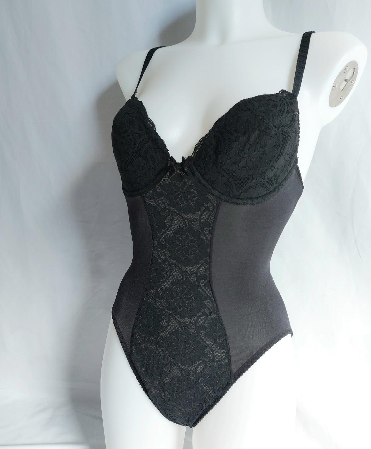 как выглядит SMOOTHING LACY SHEER BLACK Vintage 1980s BODY BRIEFER SHAPER -sz 34 B фото