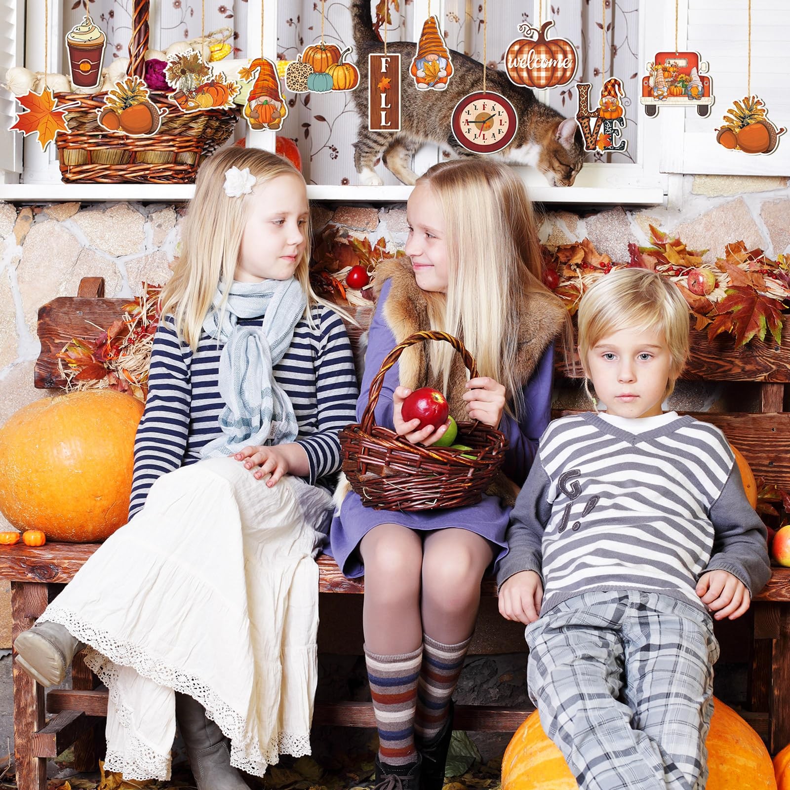 36 Pcs Thanksgiving Ornaments for Tree Fall Gnomes Wooden Hanging Ornaments