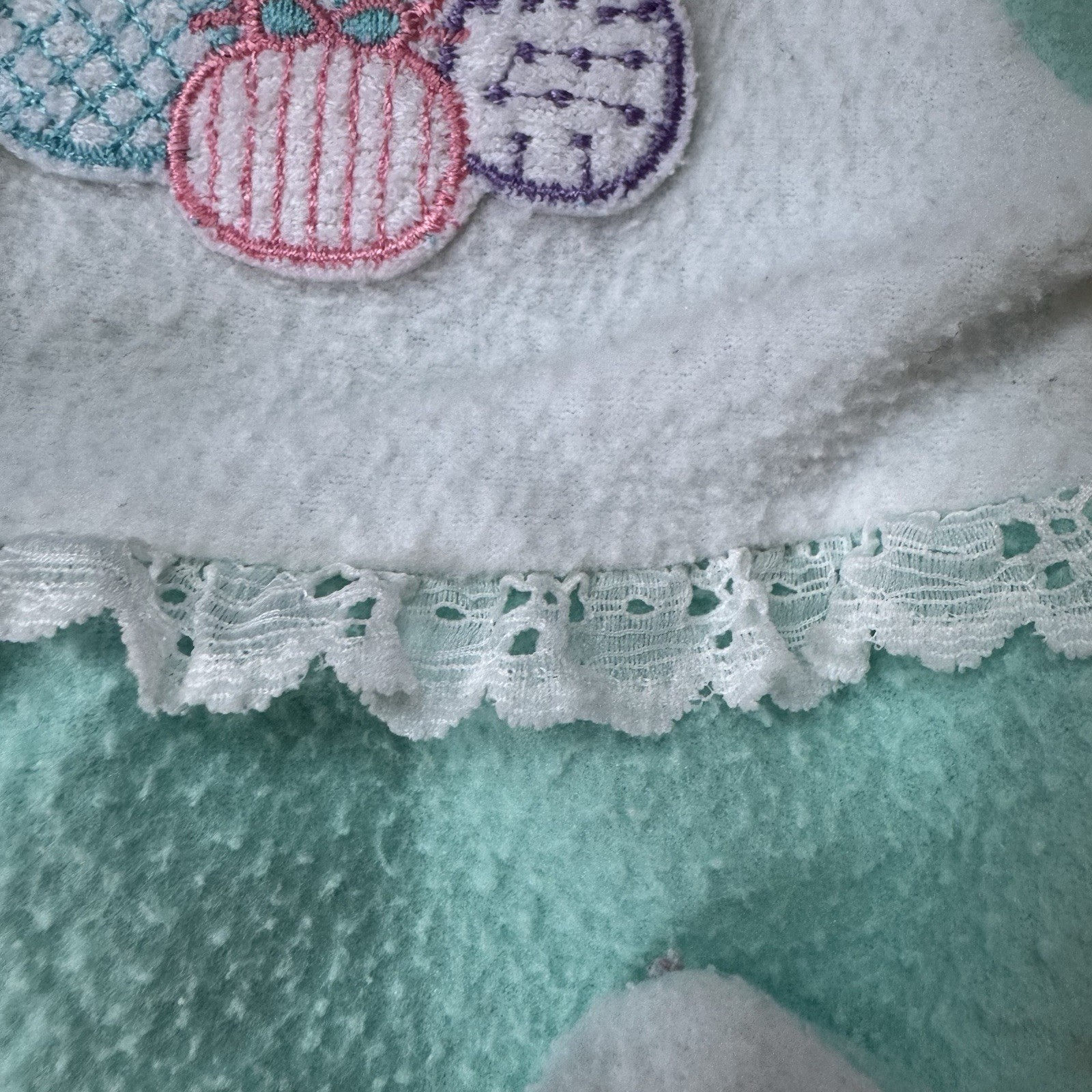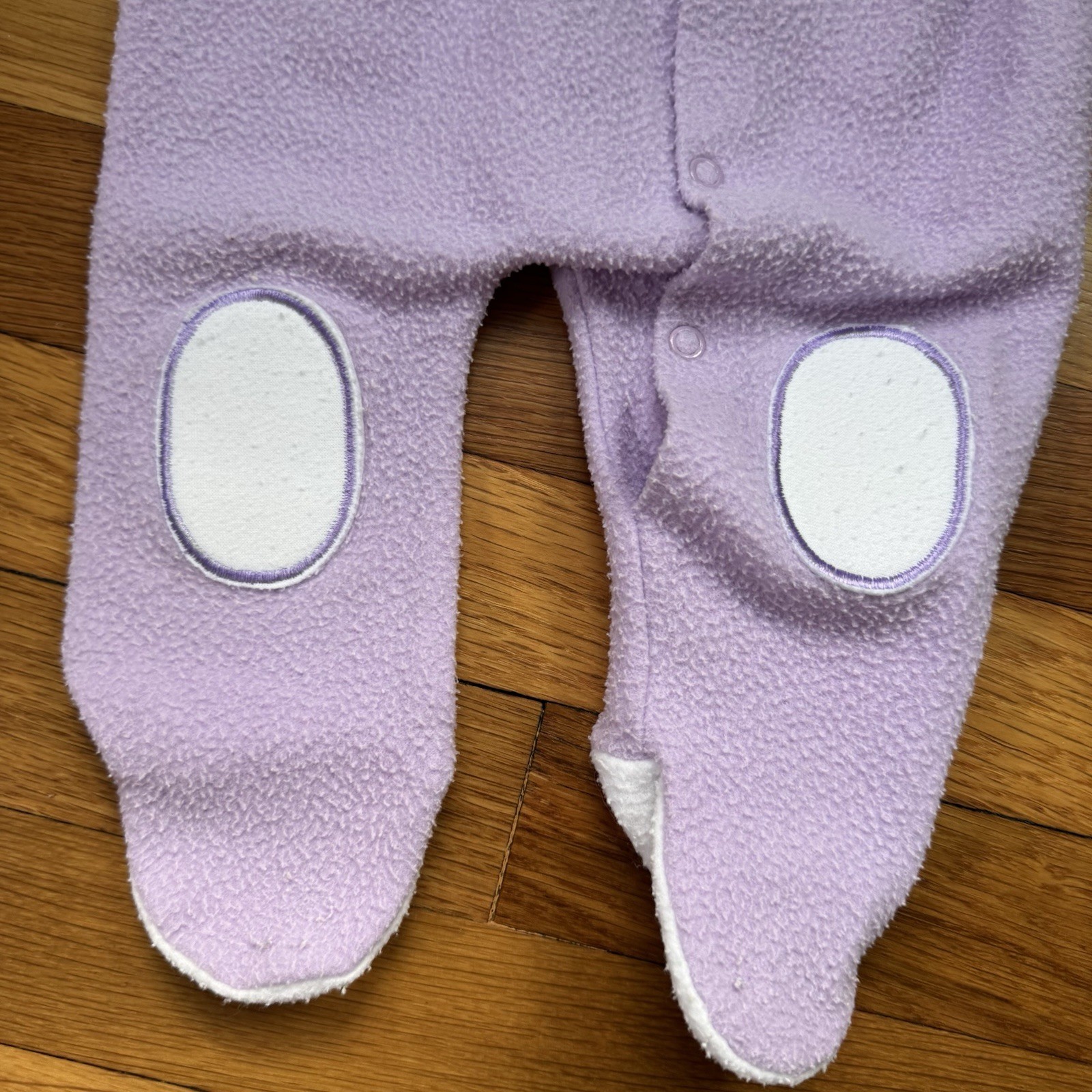 как выглядит 2 Vintage Lullaby Land Terrycloth Sleepers Green Purple Applique Medium 14-18 lb фото