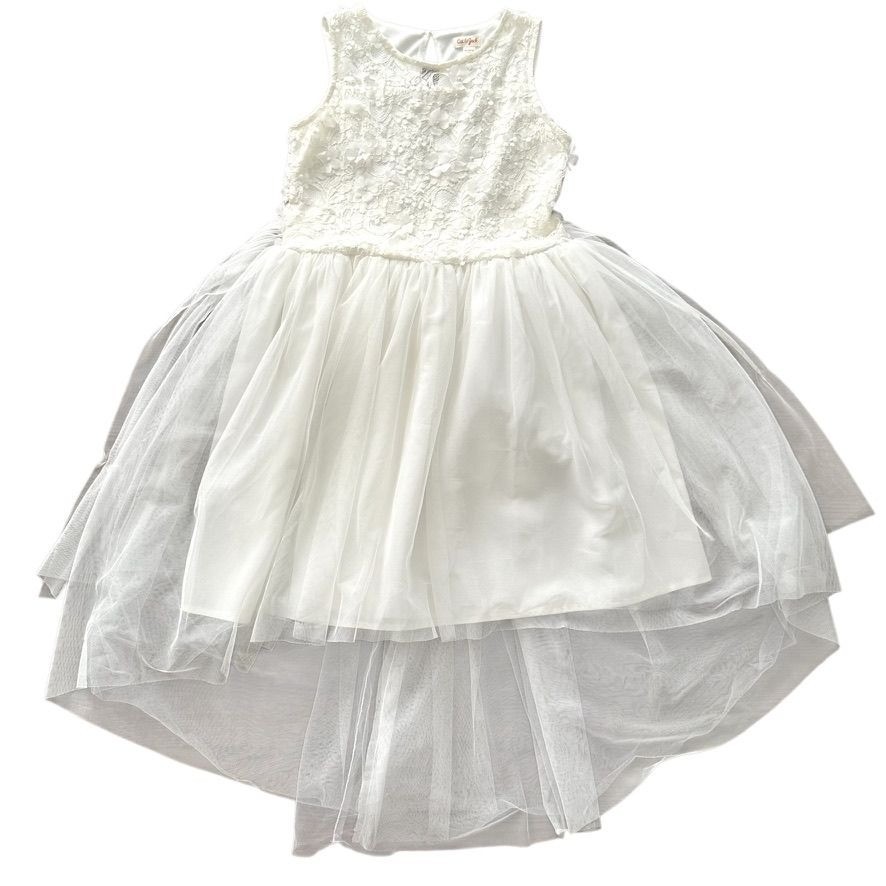 Cat Jack Girls White Sleeveless High-Low Dress With Lace Bodice Tulle Skirt