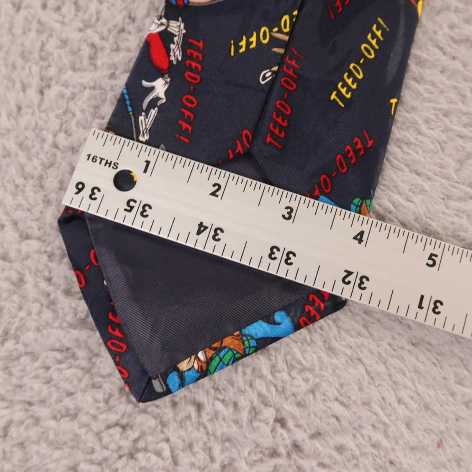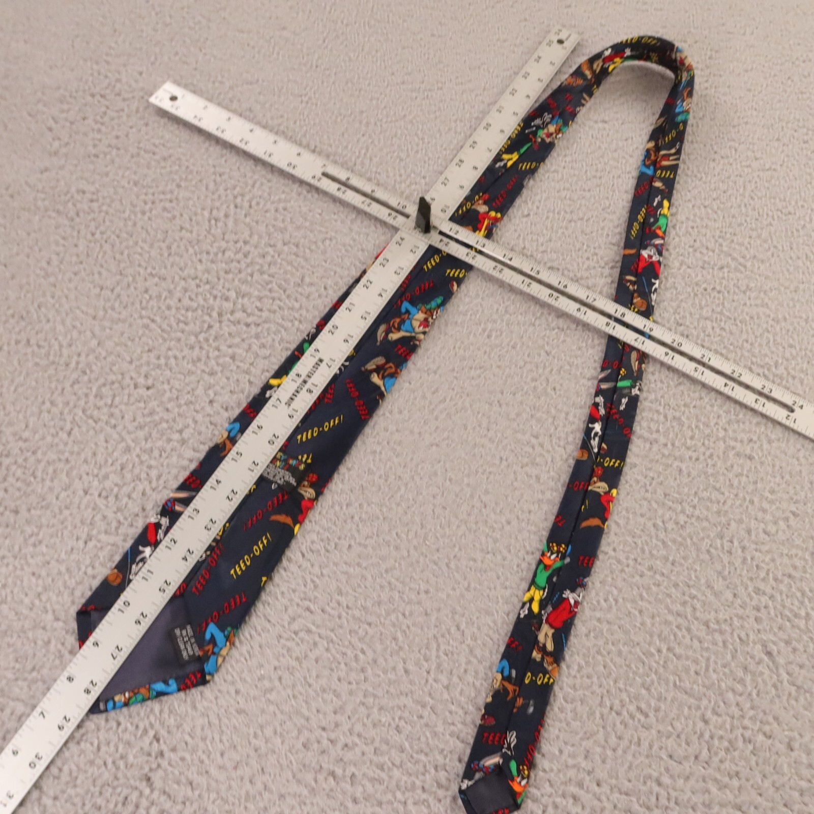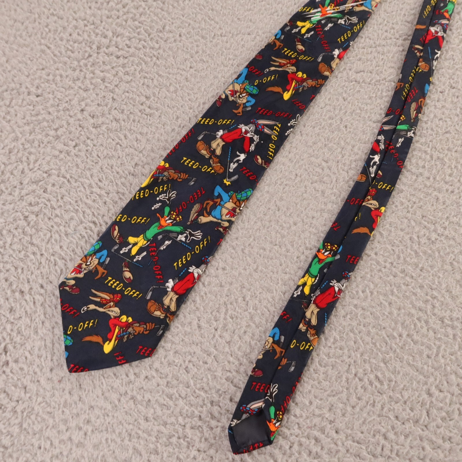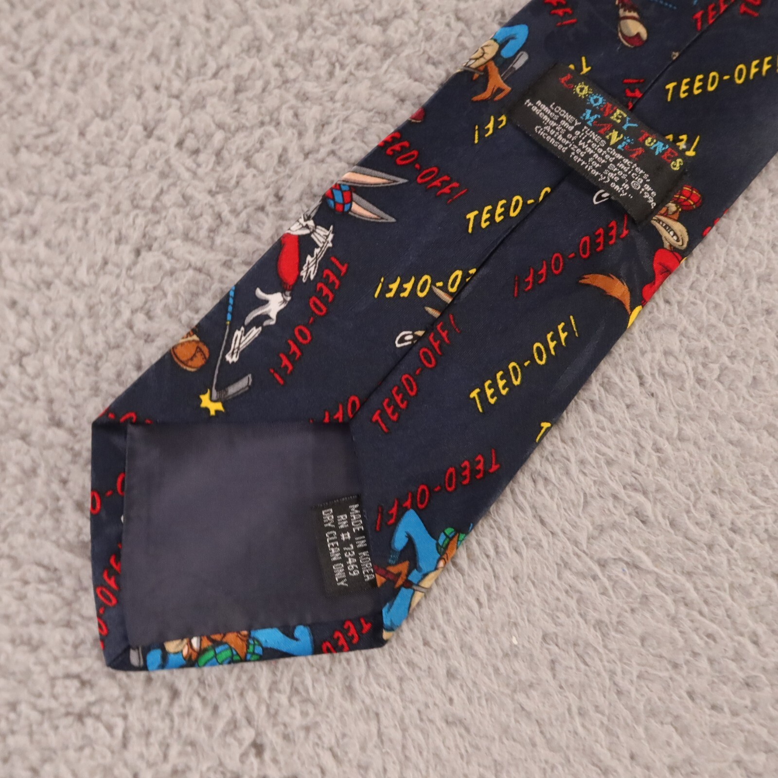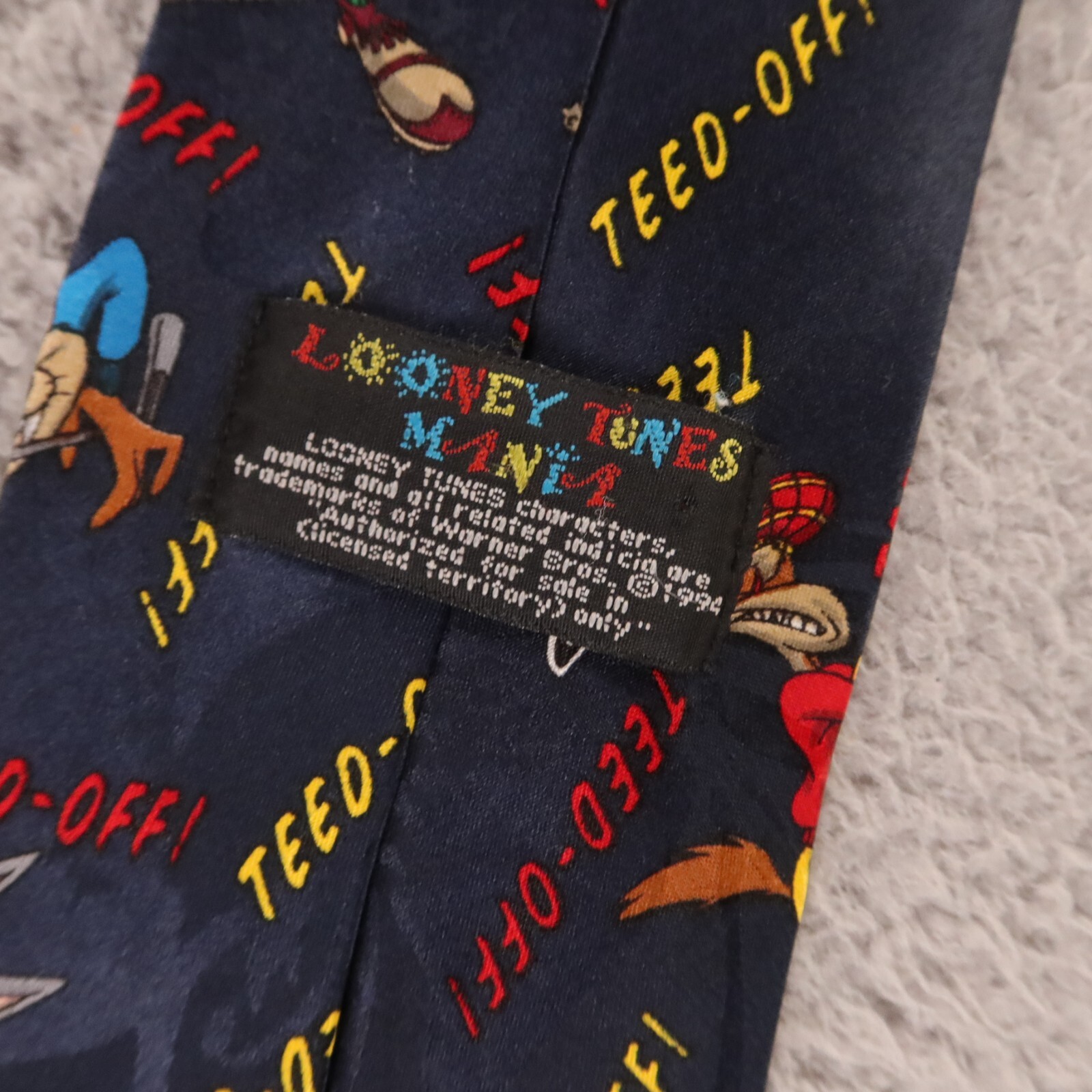 Looney Tunes Tie Blue Bugs Bunny Taz Daffy Duck Mania Golf Silk 90s 1994 4