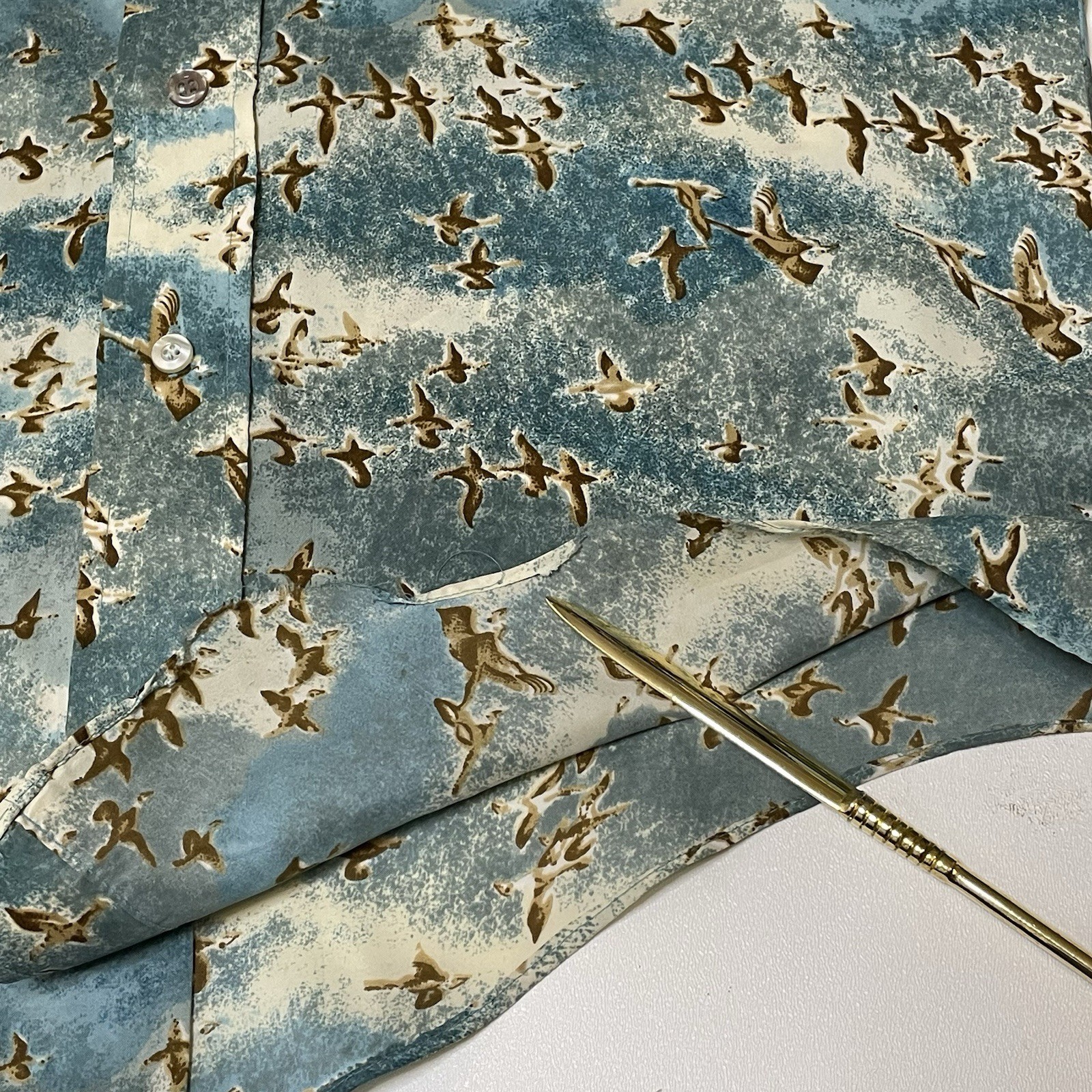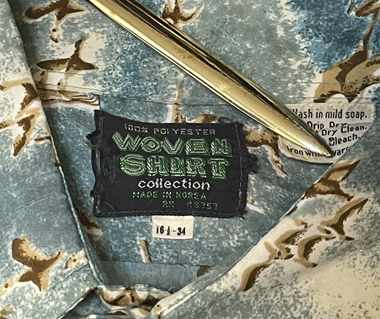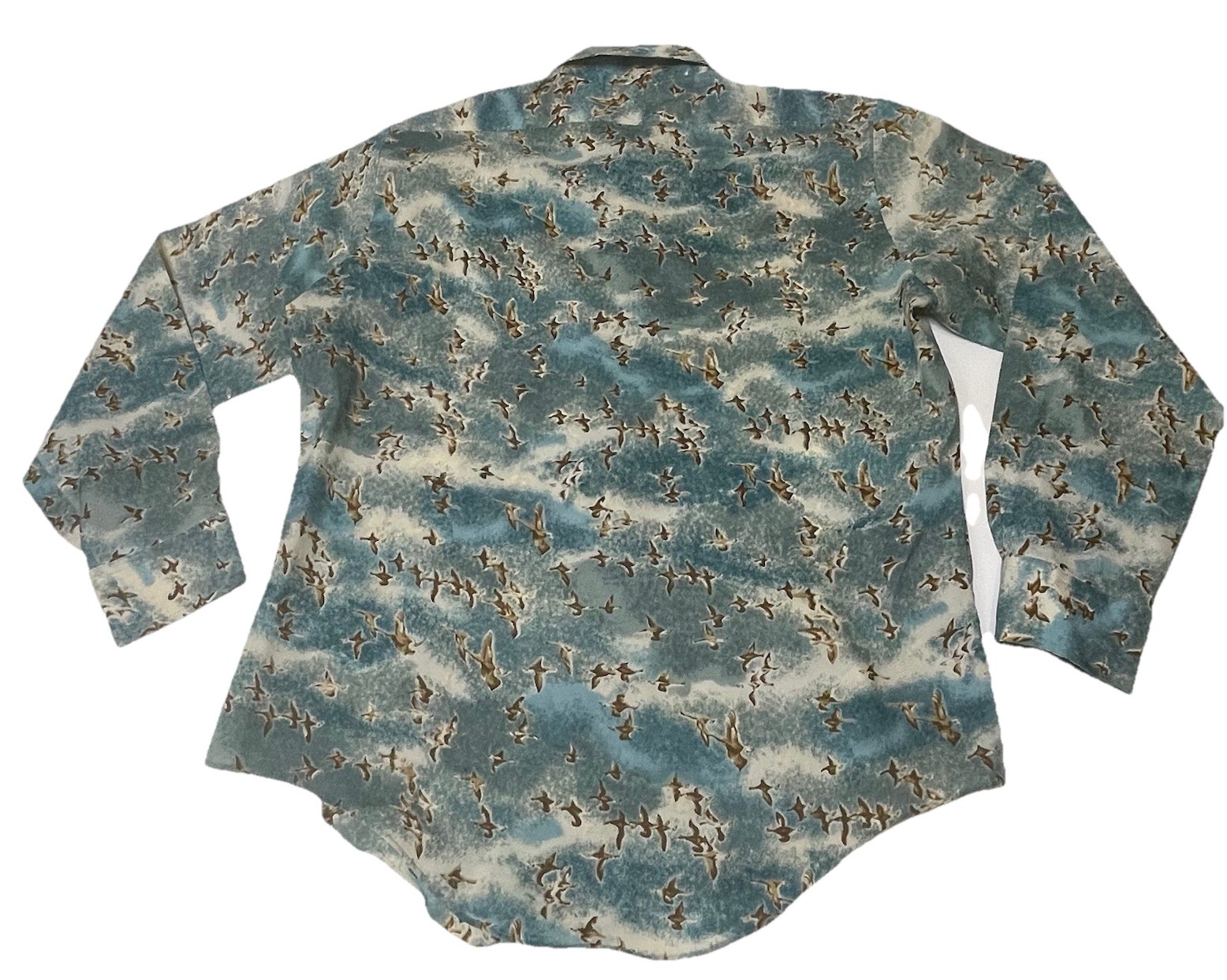 Mens 16.5 / 34 Vintage Woven Shirt Poly 70 s Disco Retro Birds All Over Casual