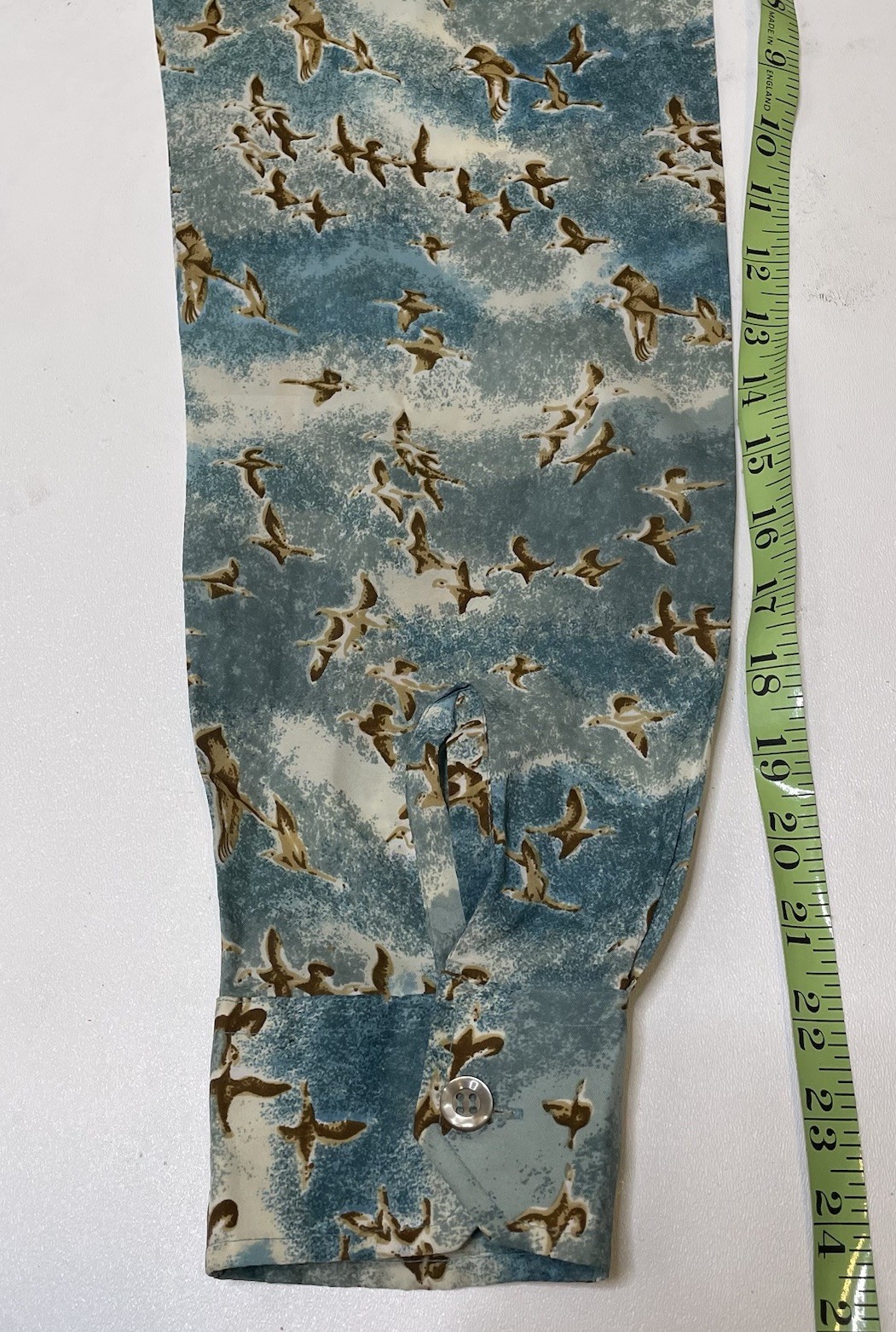как выглядит Mens 16.5 / 34 Vintage Woven Shirt Poly 70 s Disco Retro Birds All Over Casual фото