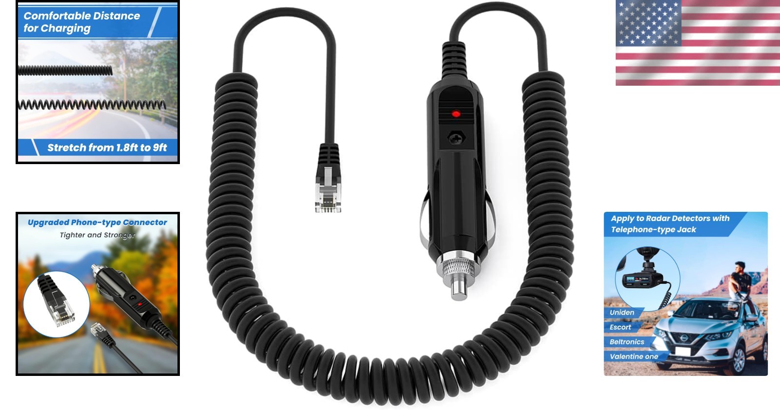 Radar Detector Power Cord with 12V Cigarette Lighter Adapter and RJ11