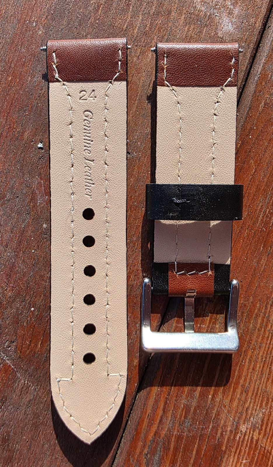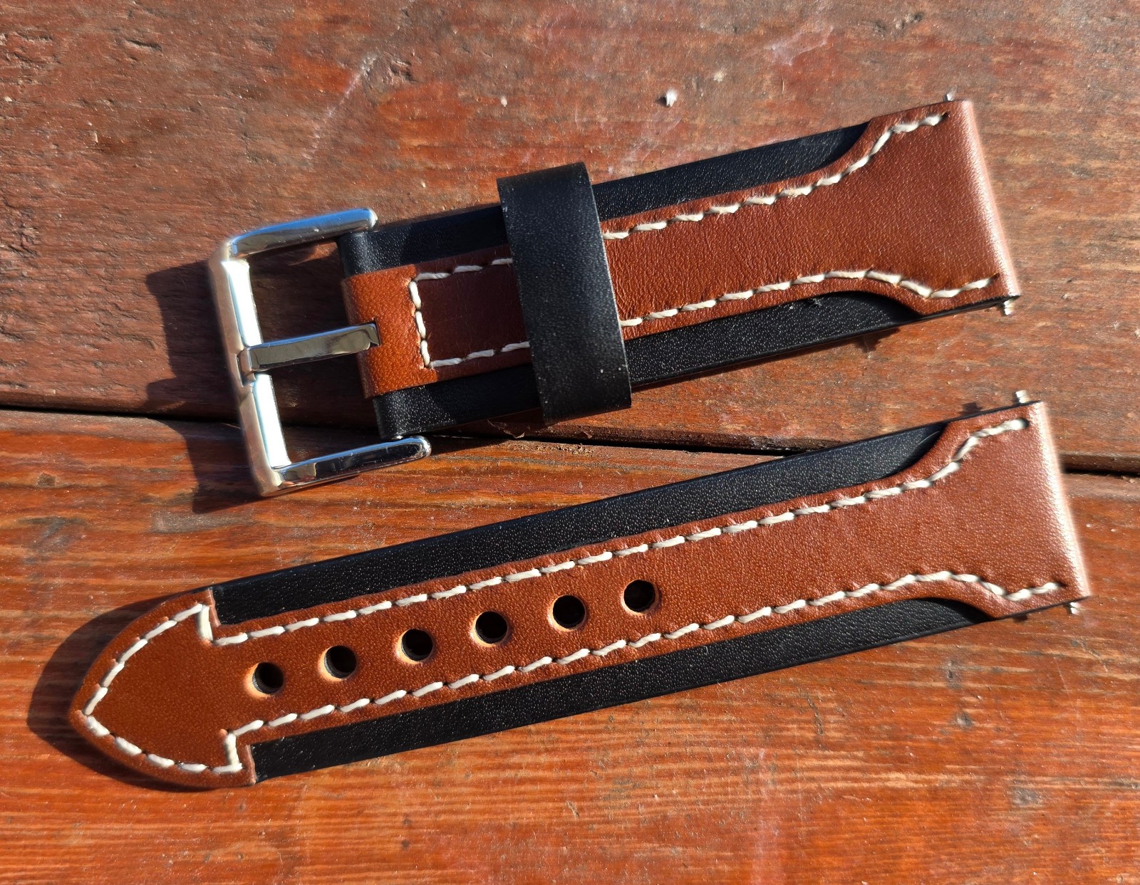как выглядит Fits Invicta Lupah Genuine Leather 24mm Brown Black Aro Genuine Alligator Strap фото