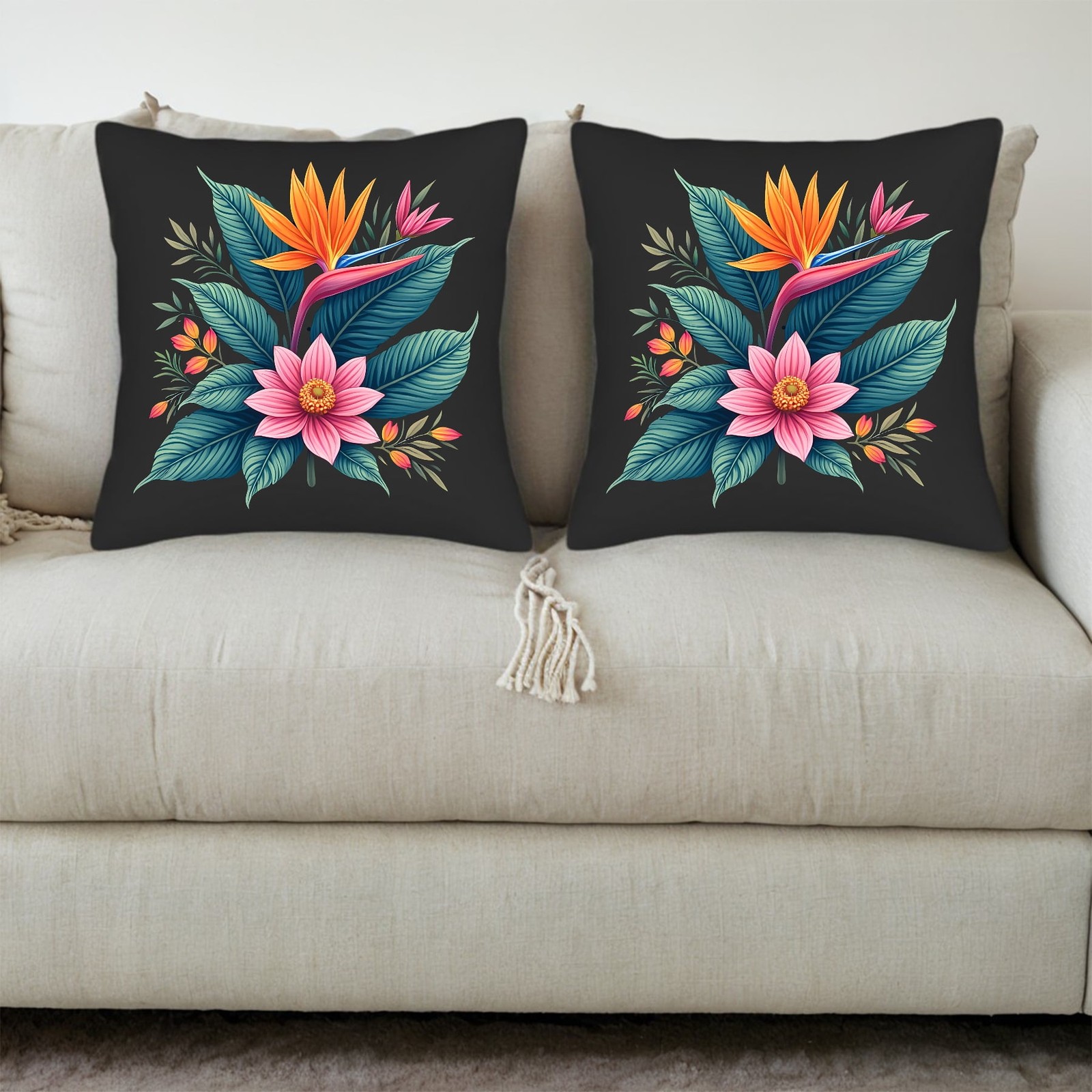 Set of 2 18x18in Throw Pillow Covers - Vibrant Floral Design