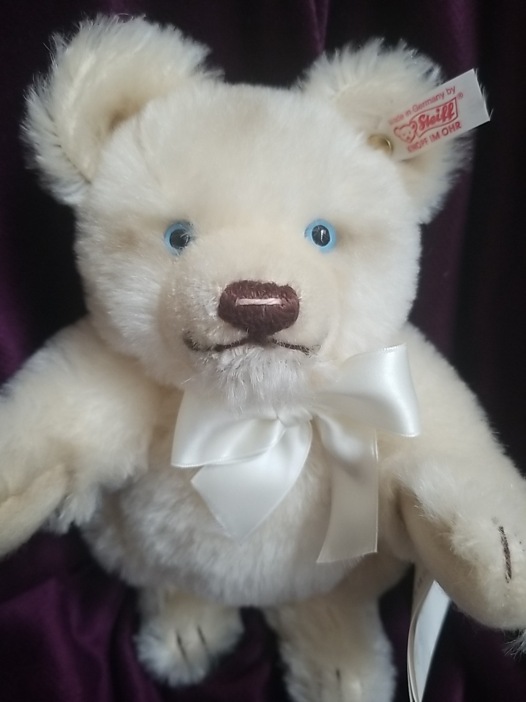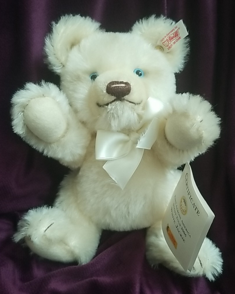 Steiff White Jackie Jointed COA and Button in tact Excellent condition