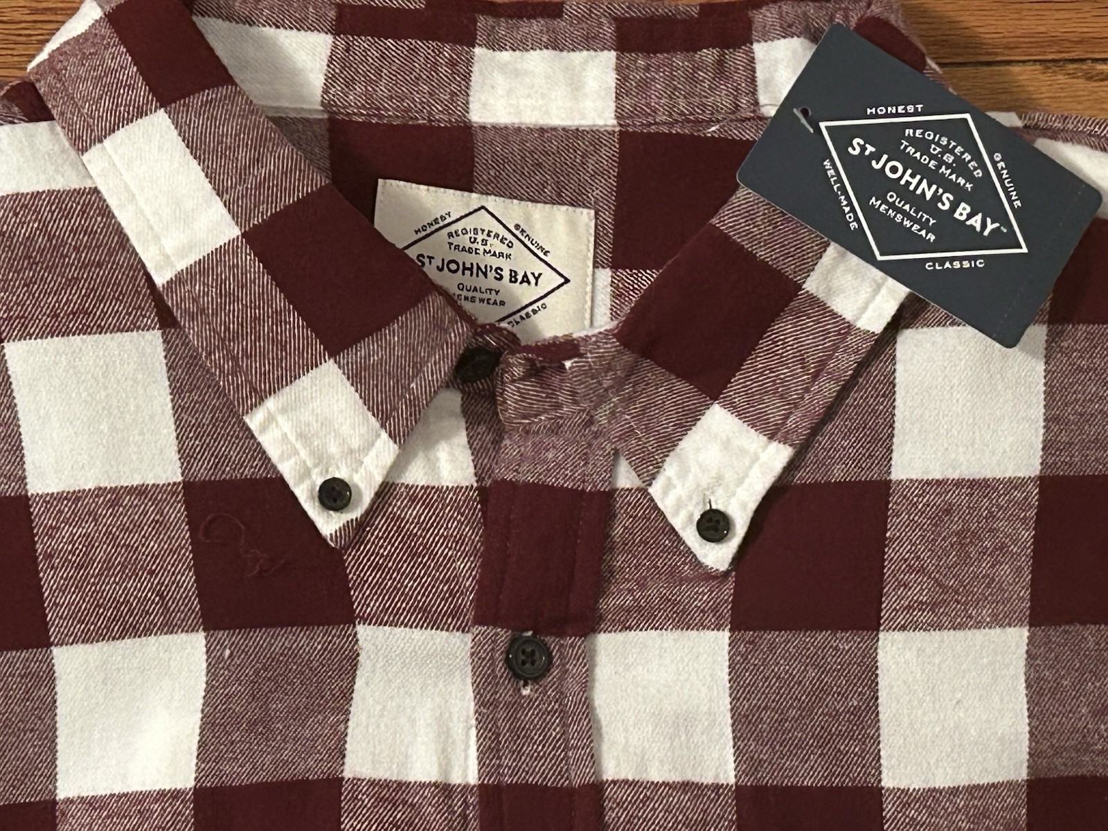 как выглядит NWT St. John s Bay Soft Flannel Buffalo Burgundy Plaid Check Shirt 3XLT TALL фото