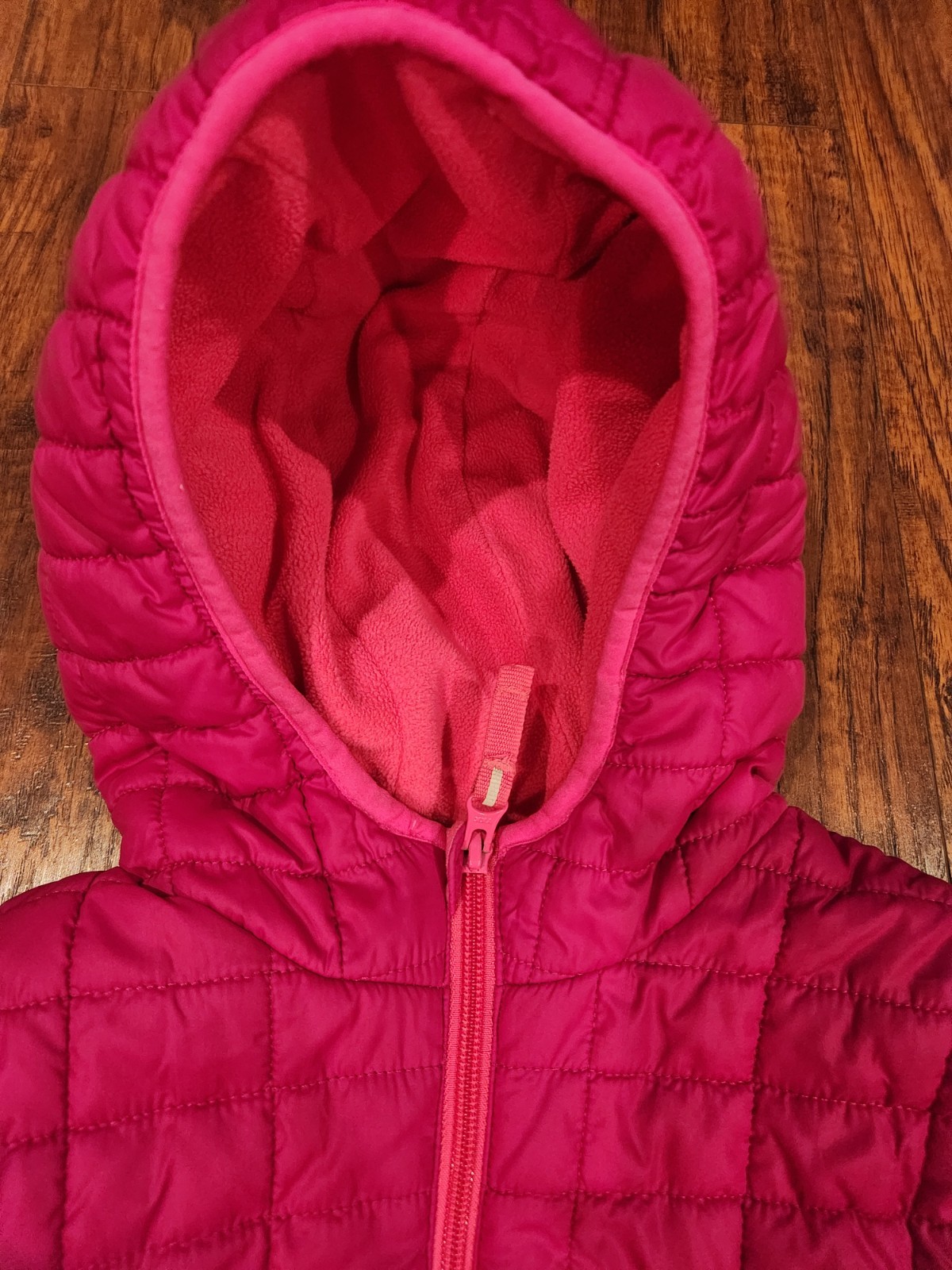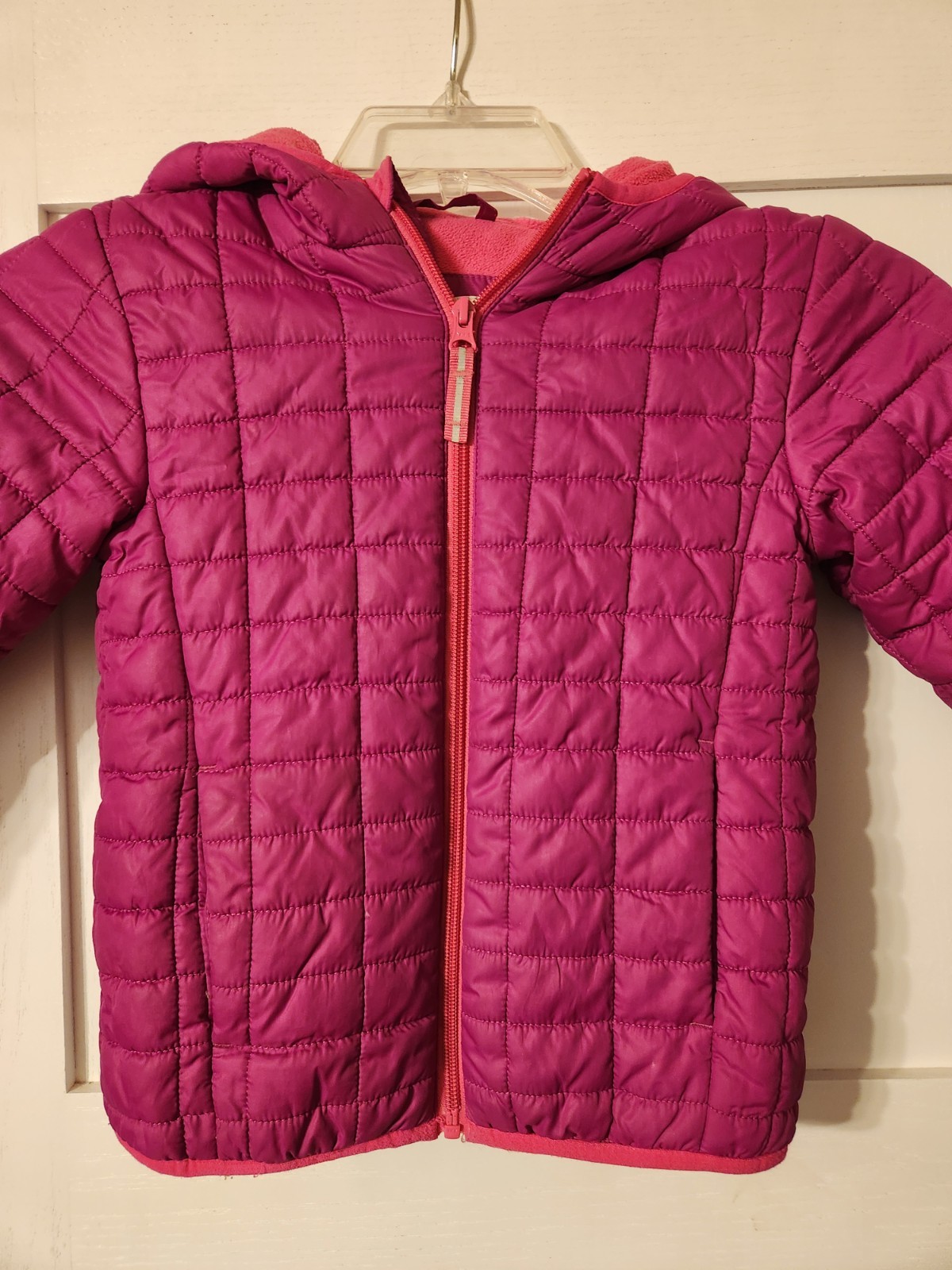как выглядит Cat and Jack Girls XS hooded magenta winter quilted jacket with fleece lining фото