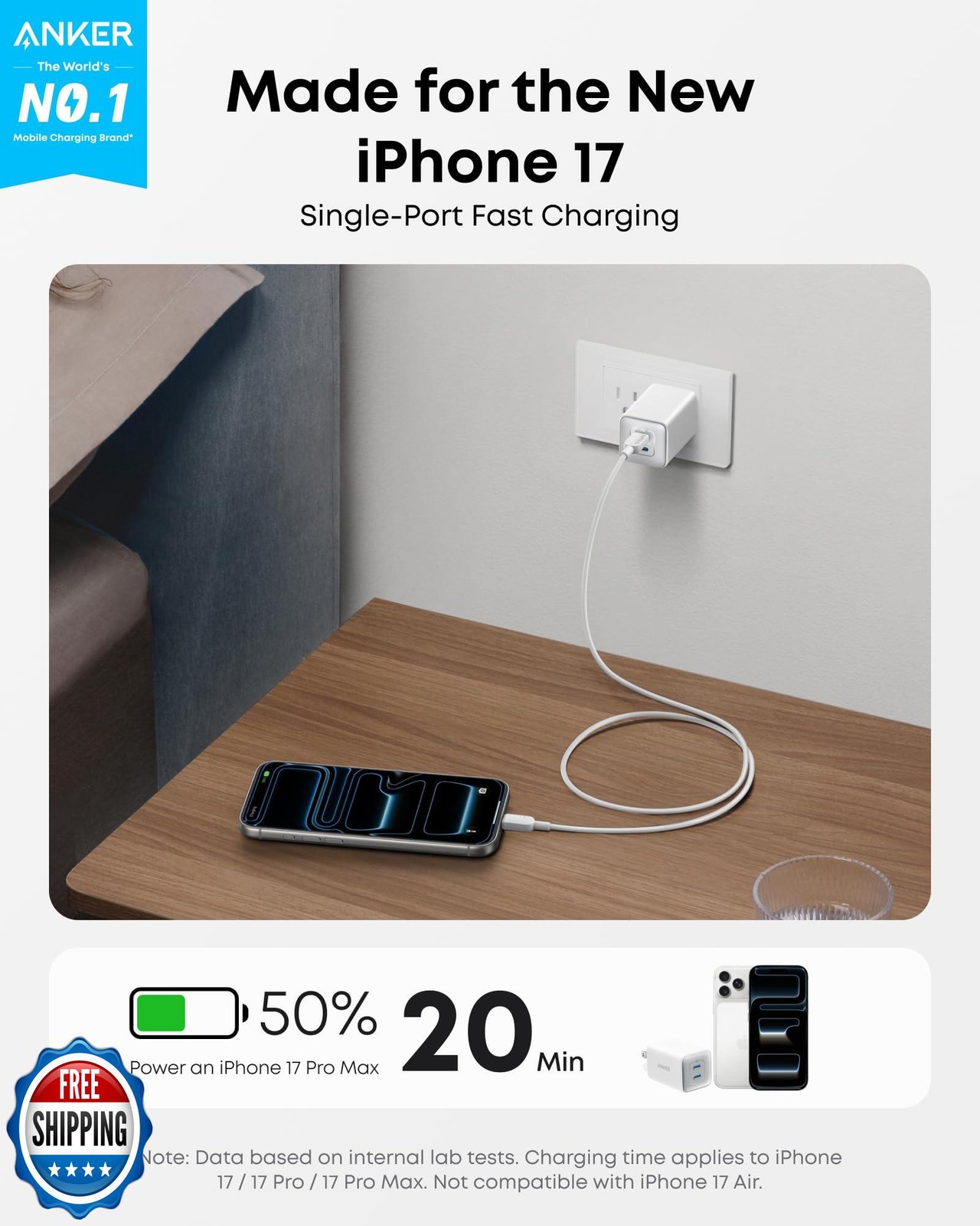 Anker Nano 47W USB C Charger, 2 Port Compact Foldable GaN Charger for iPhone