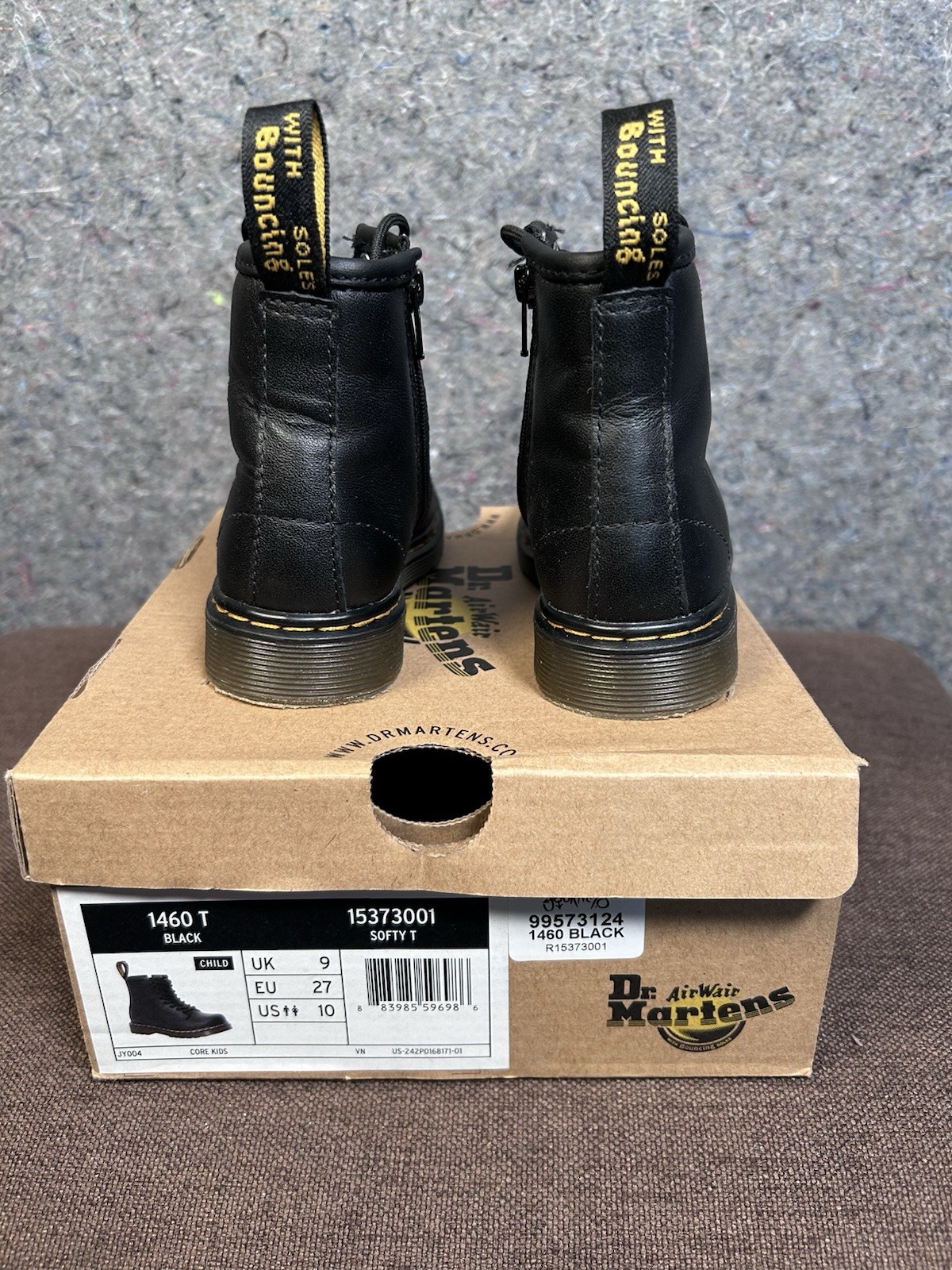 Doc Dr Martens Boots 1460T Black Leather Combat Unisex Kids Size 10 Side Zip